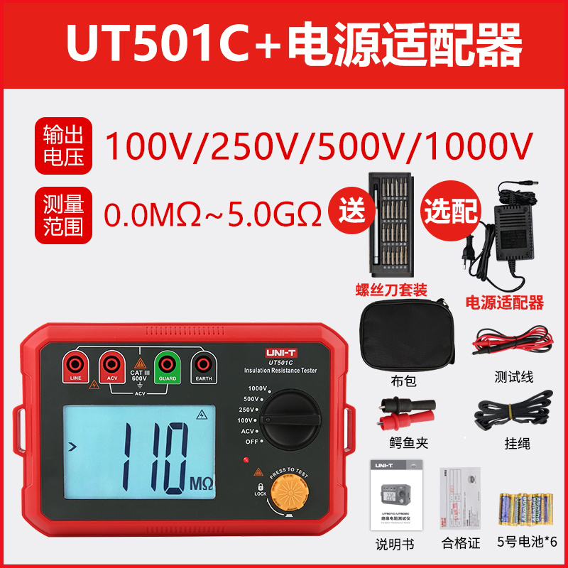 • UT501C 경제형 버전(1000V +5GΩ) + 전원 어댑터 + 무료 드라이버 세트