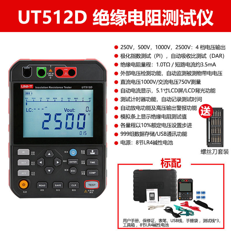 • UT512 산업용 버전(2500V+100GΩ) + 무료 드라이버 세트