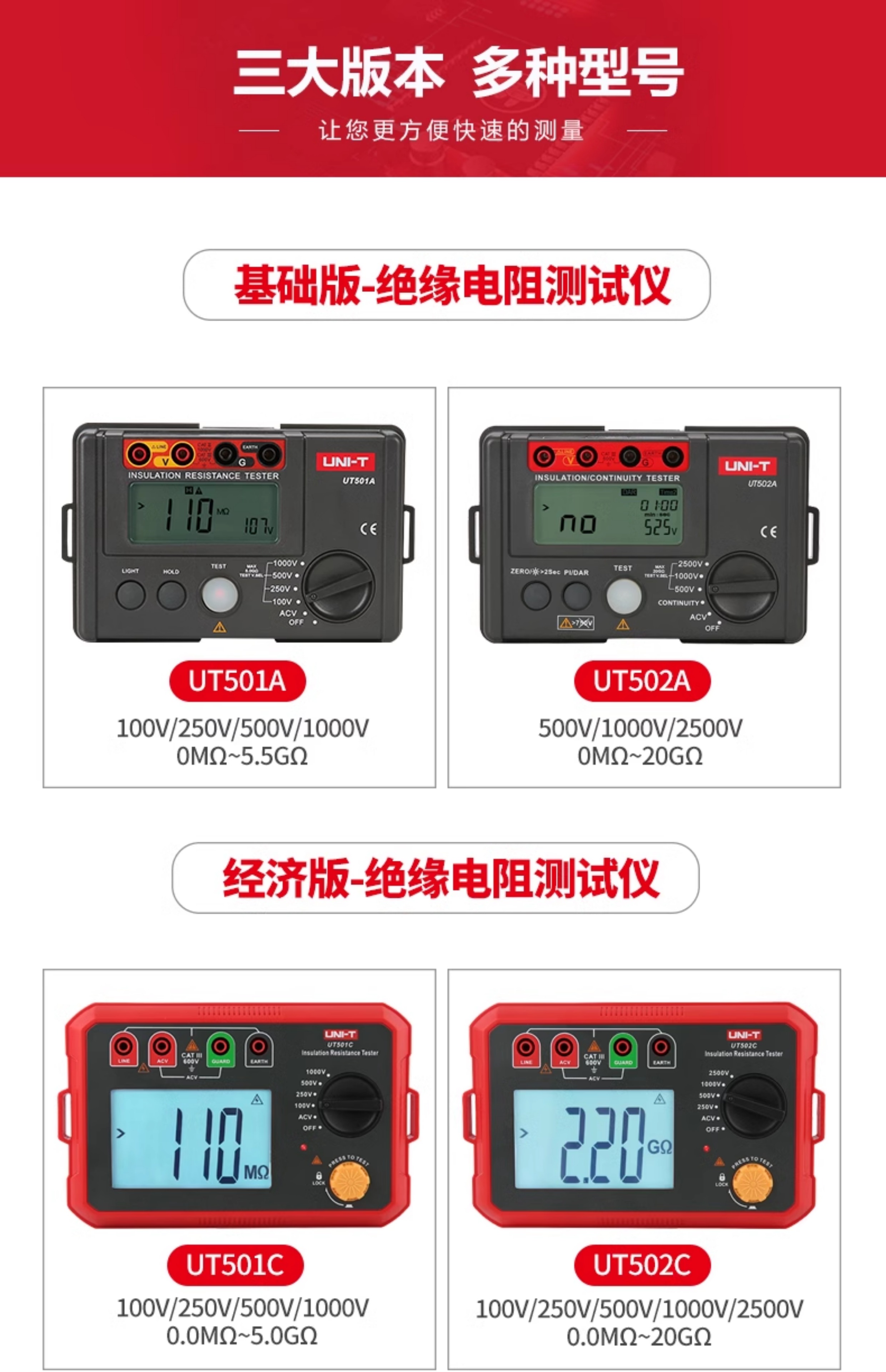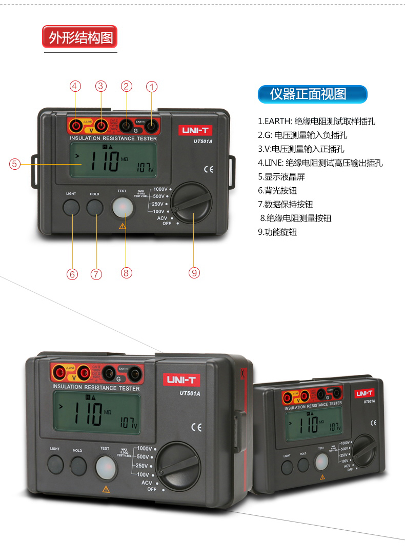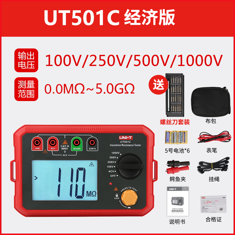 • UT501C 경제형 버전(1000V +5GΩ) + 무료 드라이버 세트