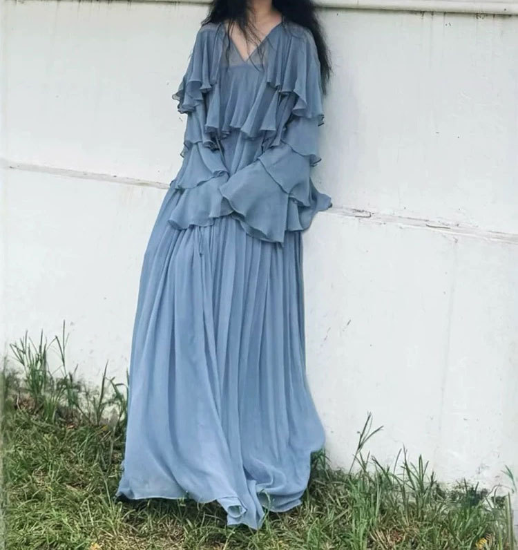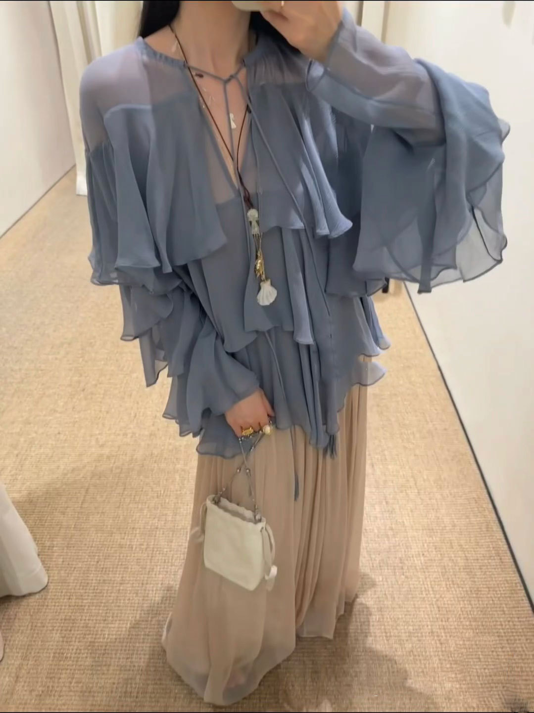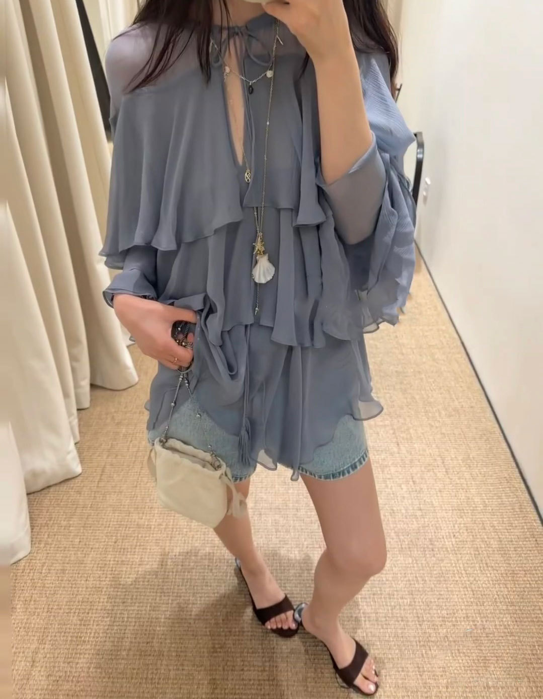 2025 봄/가을 신상 무지 러플 레이스업 배색 셔츠+스커트 세트스토어 가기