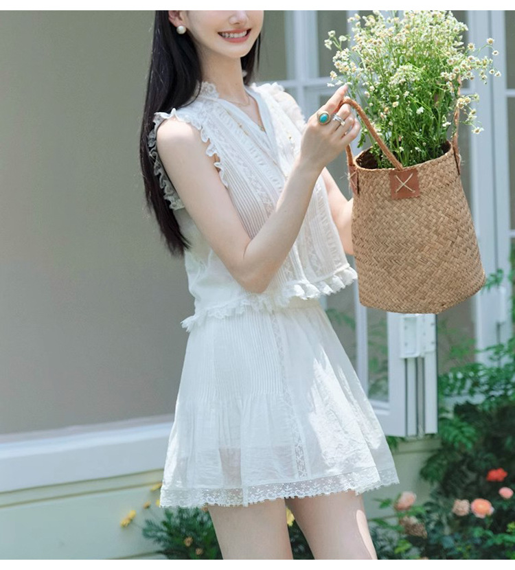 Spot Huaying 100% 면 헤비듀티 터커 실 민소매 탑과 스커트 세트 여성용 투피스 숏탑스토어 가기