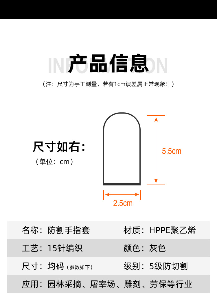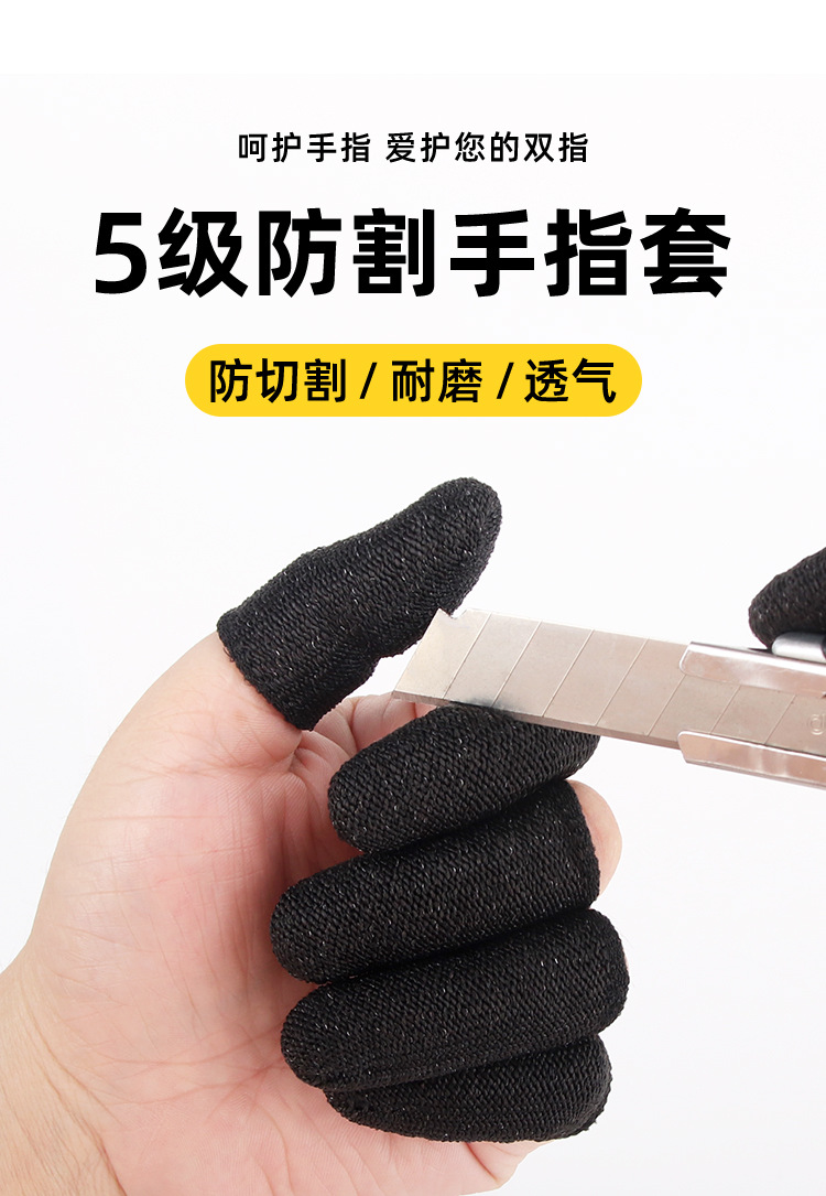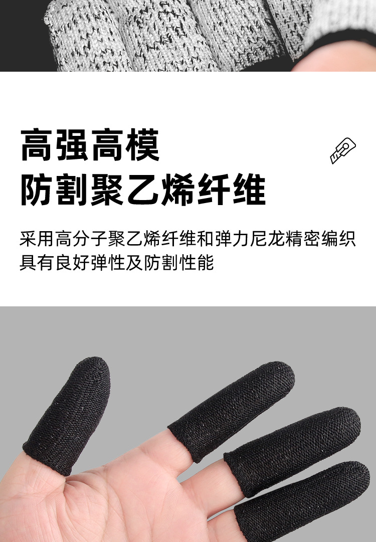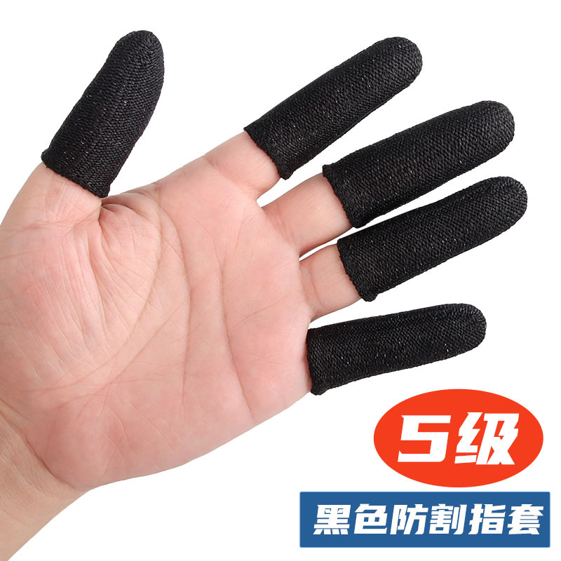 검은색 5단계 절단 방지 핑거 슬리브 HPPE 두꺼운 내마모성 인장 조각 및 목각 방지 나이프 절단 방지 미끄럼 방지 작업 보호 핑거 슬리브
