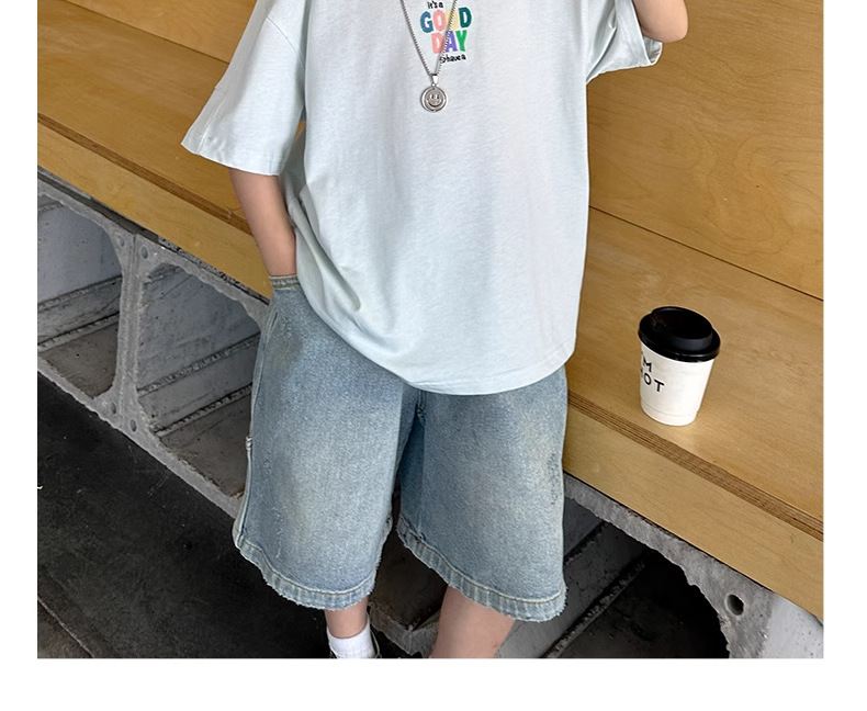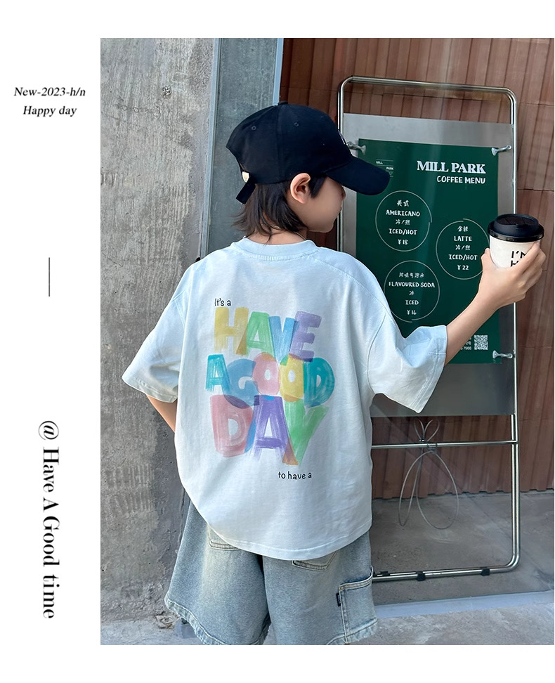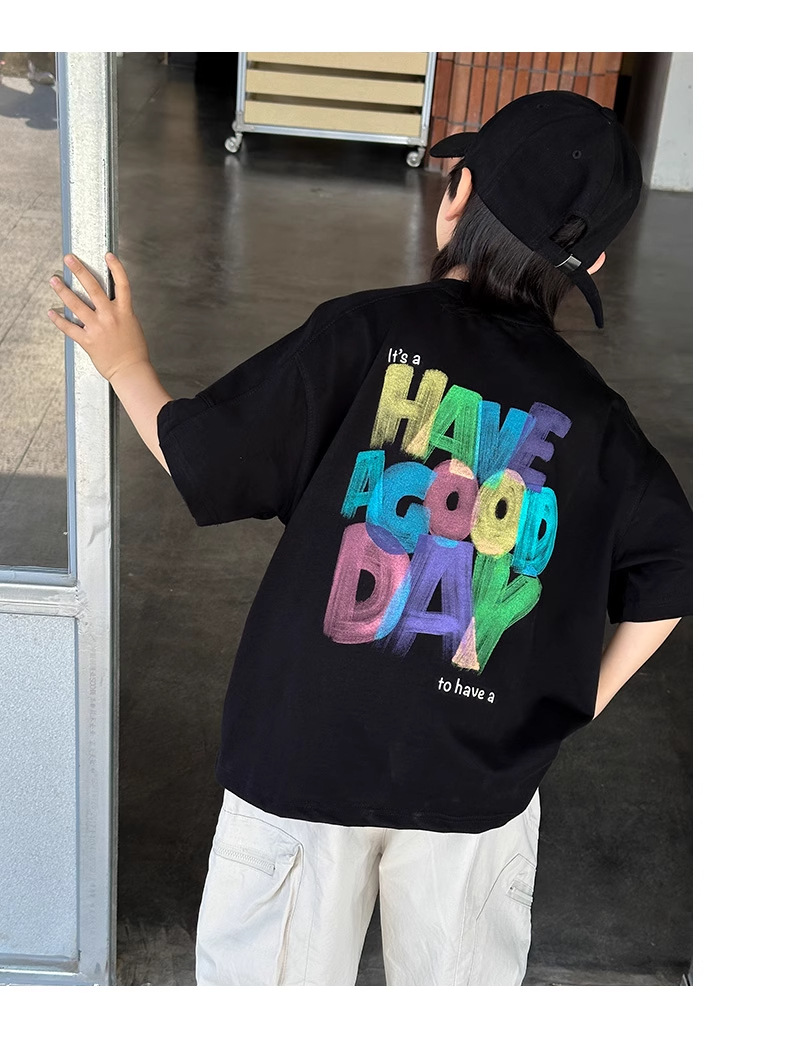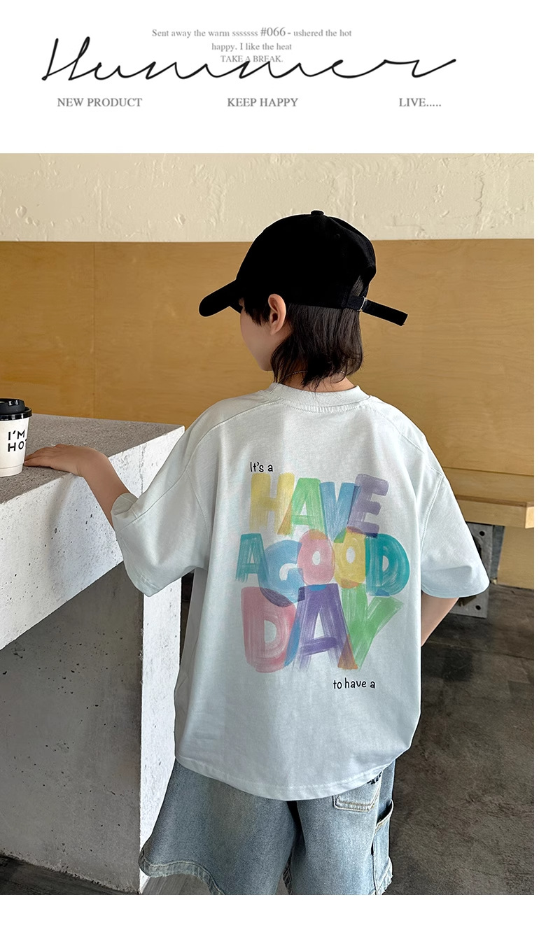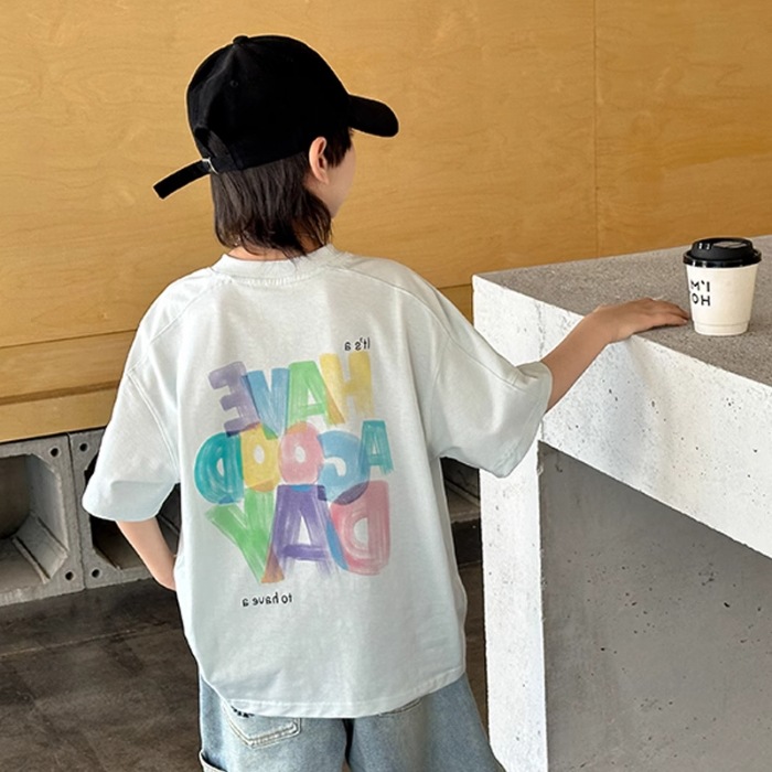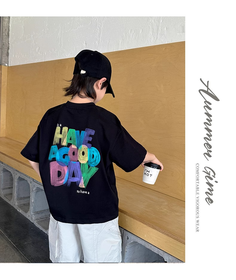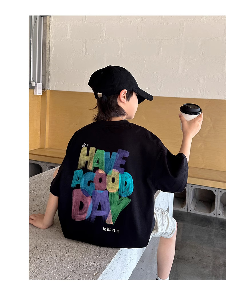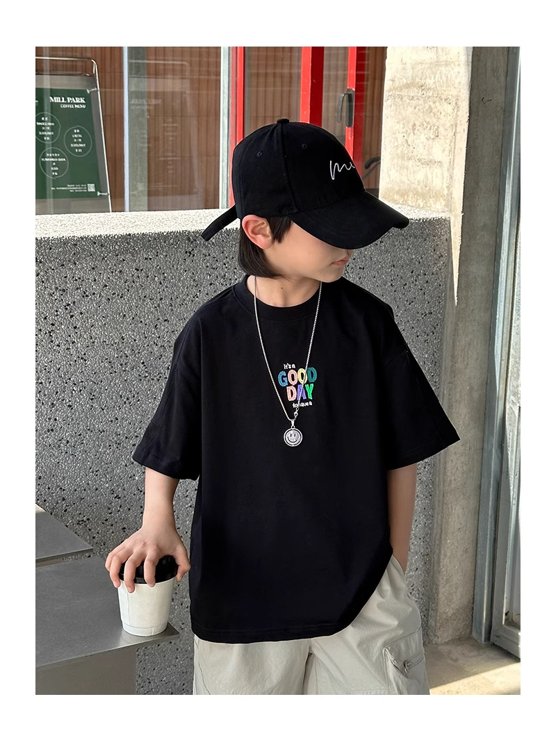 아동 의류 소년 여름 반팔 티셔츠 2025 새로운 소년 여름 스타일 중대형 어린이 느슨한 유행 순수 코튼 탑 유행 t스토어 가기