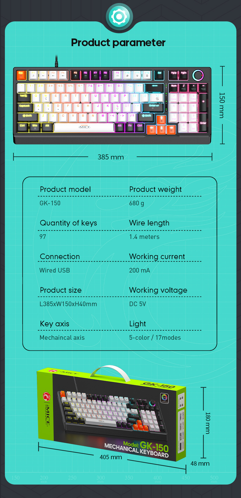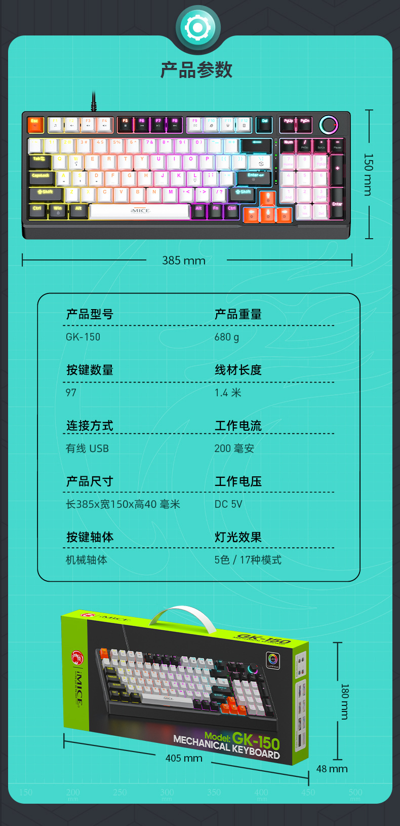 IMICE 공장 스팟 GK-150 진정한 기계식 키보드 빨간색 축 97 키 USB 유선 플러그 앤 플레이 오피스 게임스토어 가기