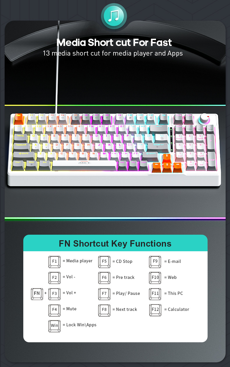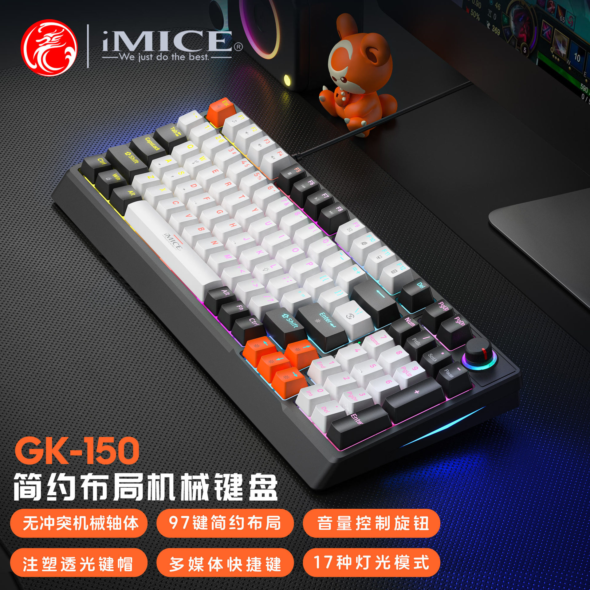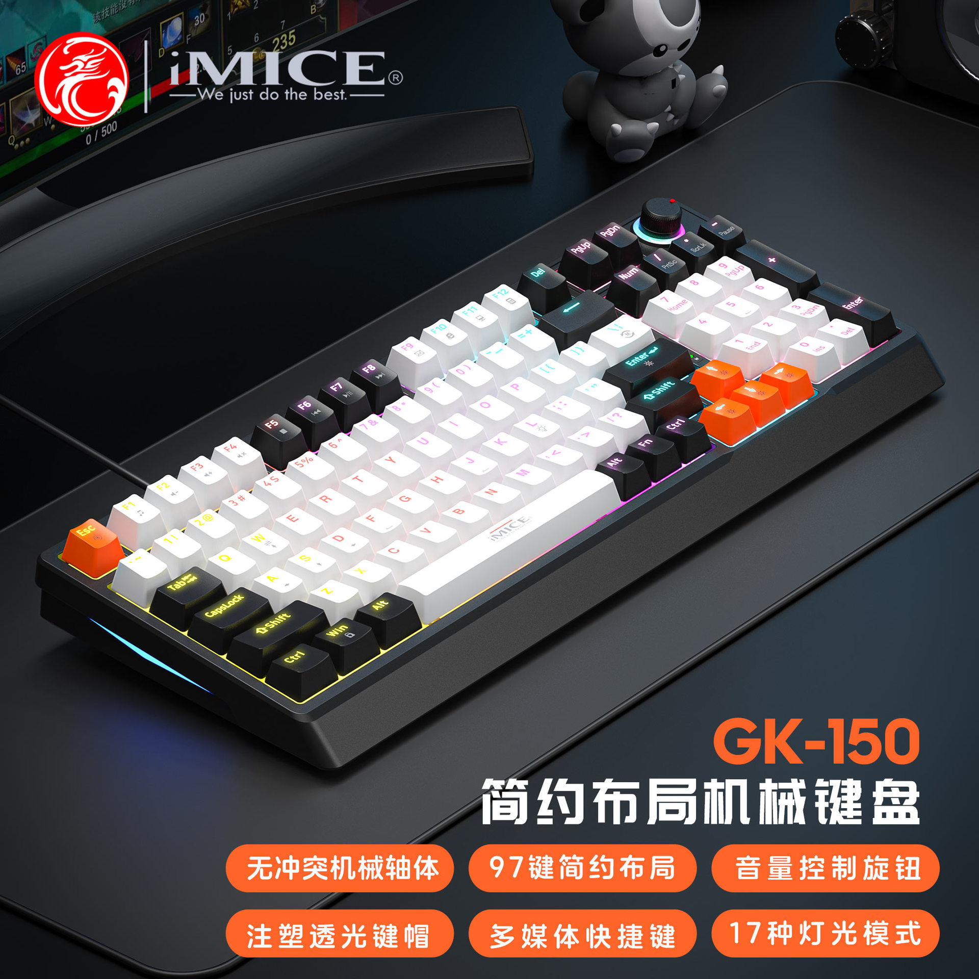 IMICE 공장 스팟 GK-150 진정한 기계식 키보드 빨간색 축 97 키 USB 유선 플러그 앤 플레이 오피스 게임