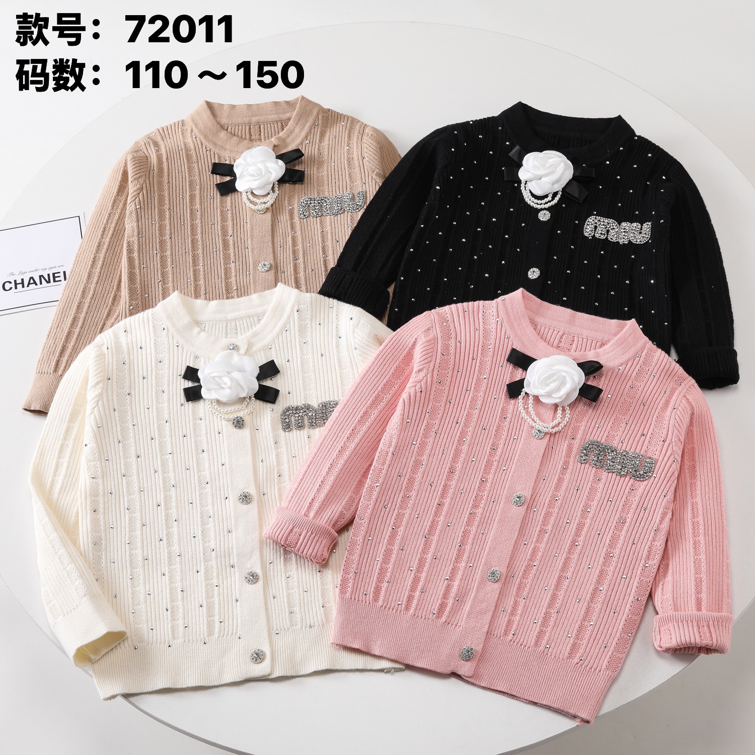 가을, 겨울 새로운 대외 무역 어린이 스웨터 재킷 2025 코어 스펀 원사 라운드 넥 핫 다이아몬드 보우 소녀 니트 가디건
