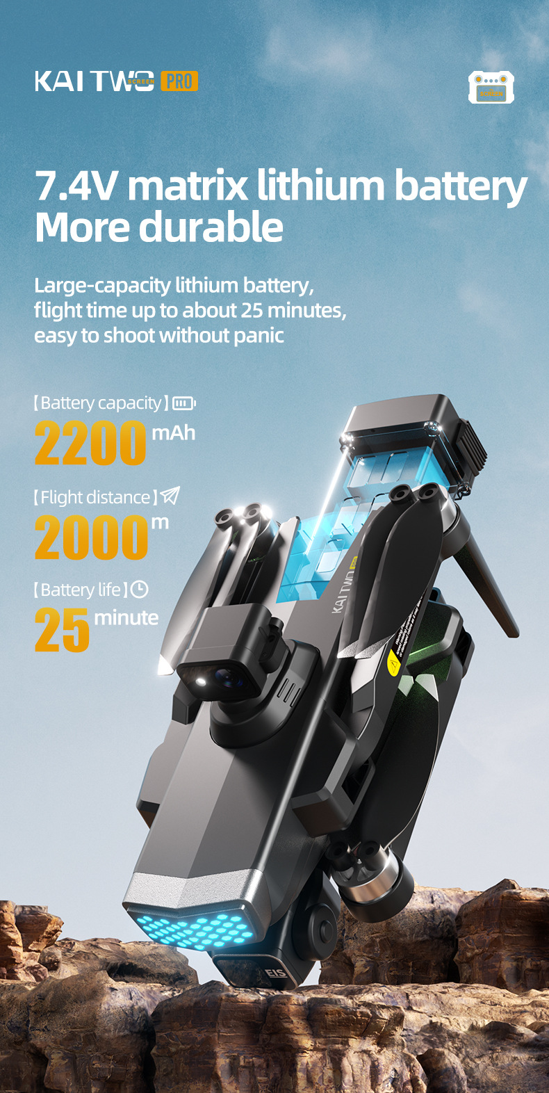 • [장애물 회피 없음 - 단일 배터리 버전] - Kai 2 메탈릭 블루 모델 [디스플레이 리모컨 포함]