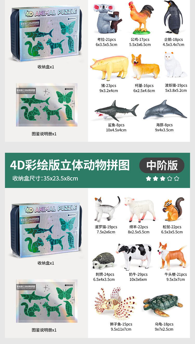 국경 간 새로운 어린이 3D 입체 퍼즐 유아 동물 조립 장난감 퍼즐 3-6 세 동물 모델스토어 가기