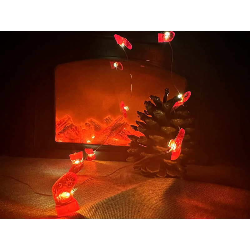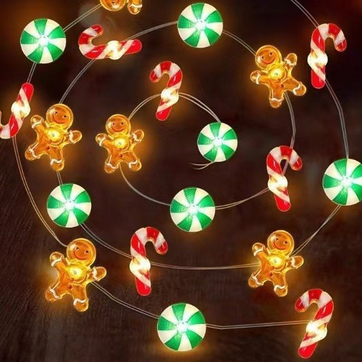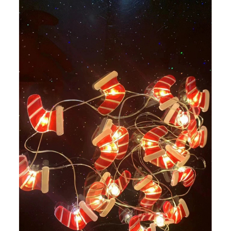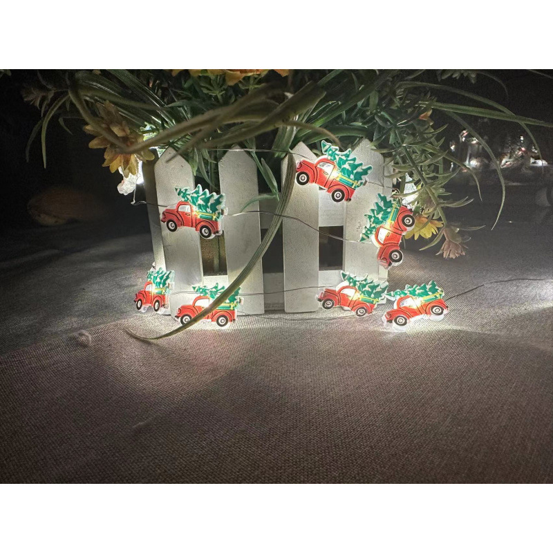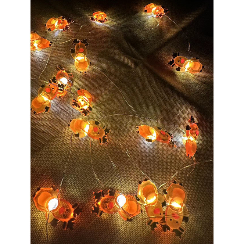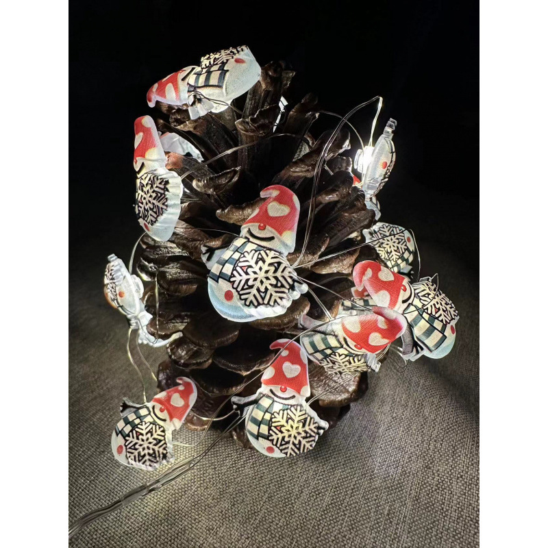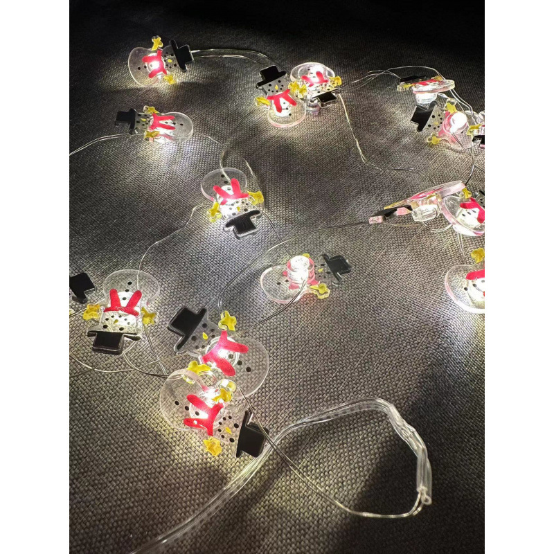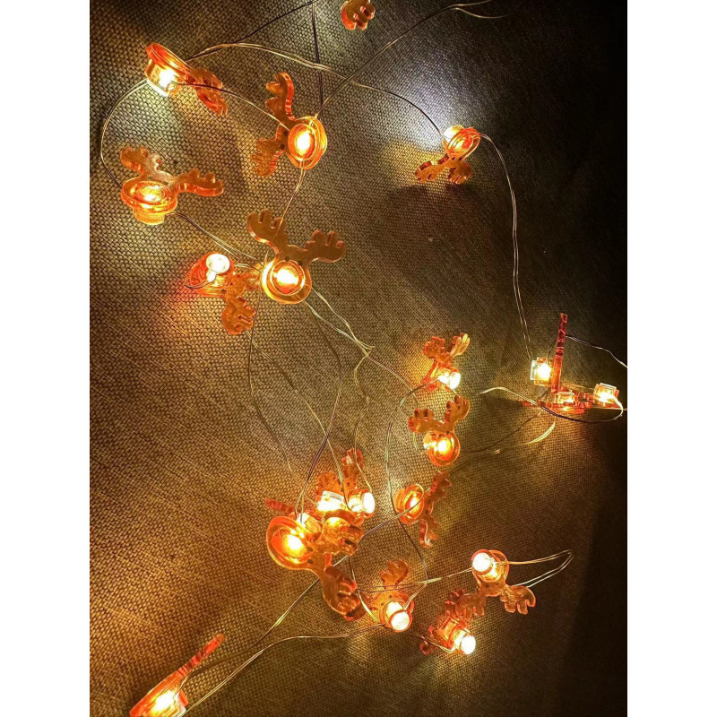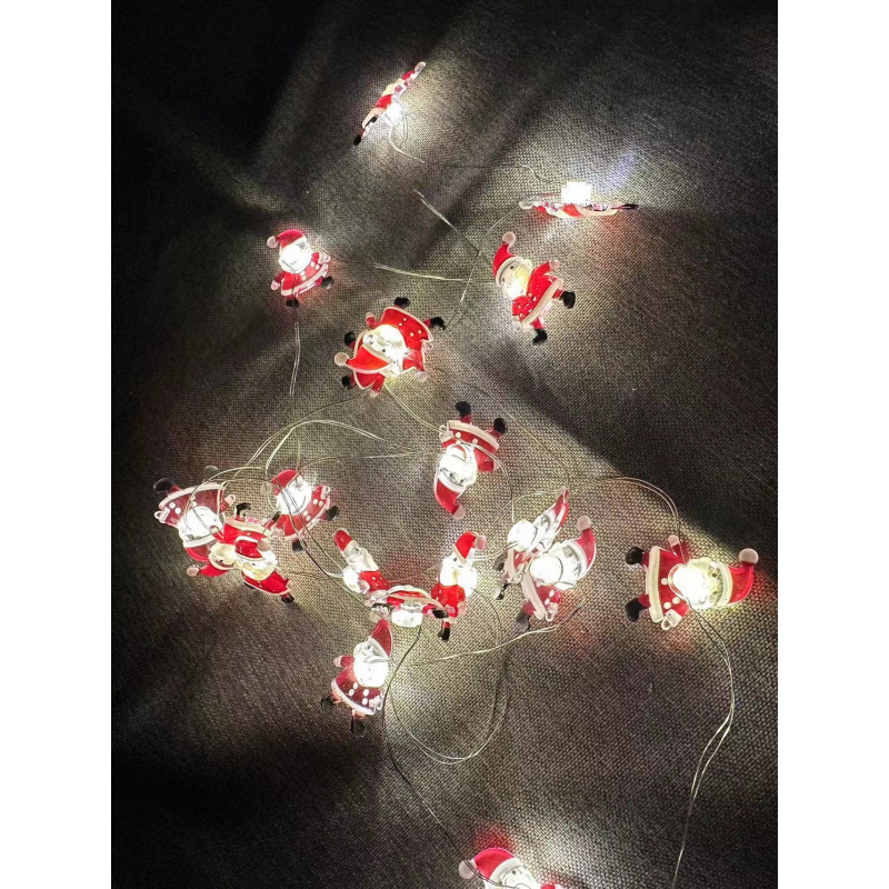 크로스 보더 대량 크리스마스 led 산타 클로스 검은 모자 눈사람 사슴 머리 지팡이 선물 상자 벨 패스너 구리 와이어 램프