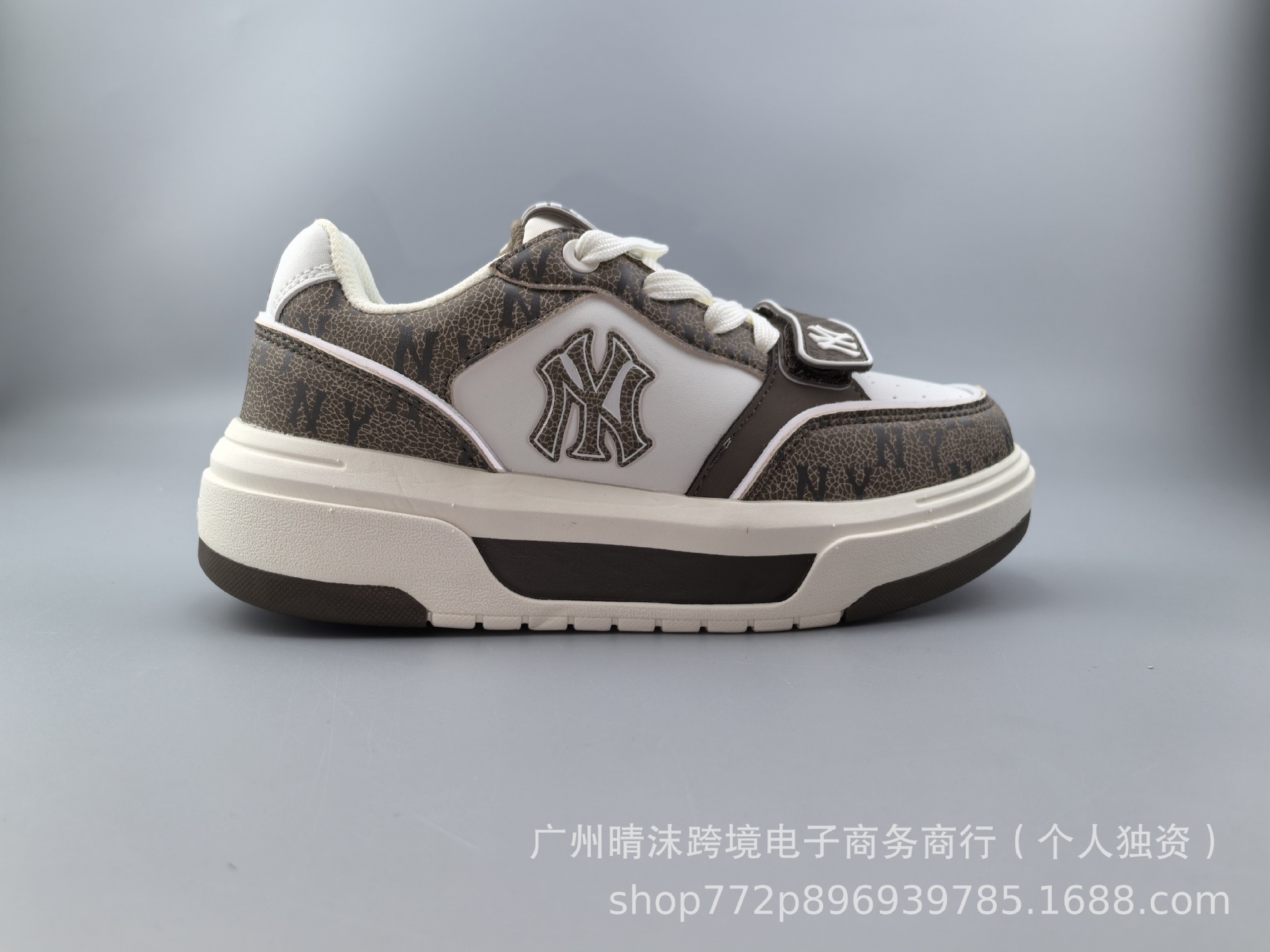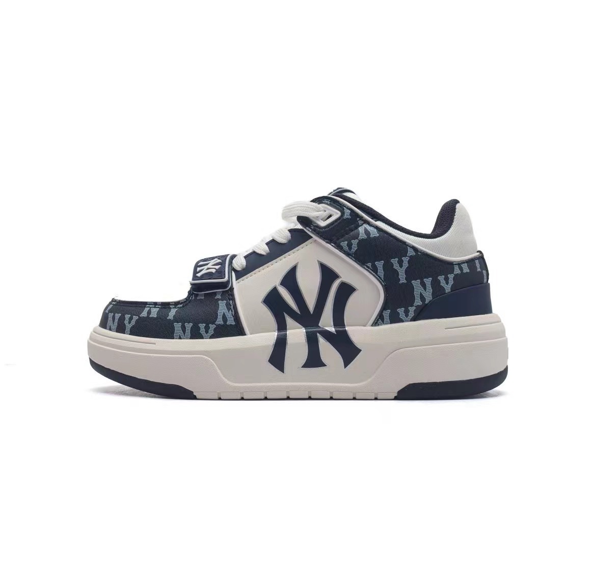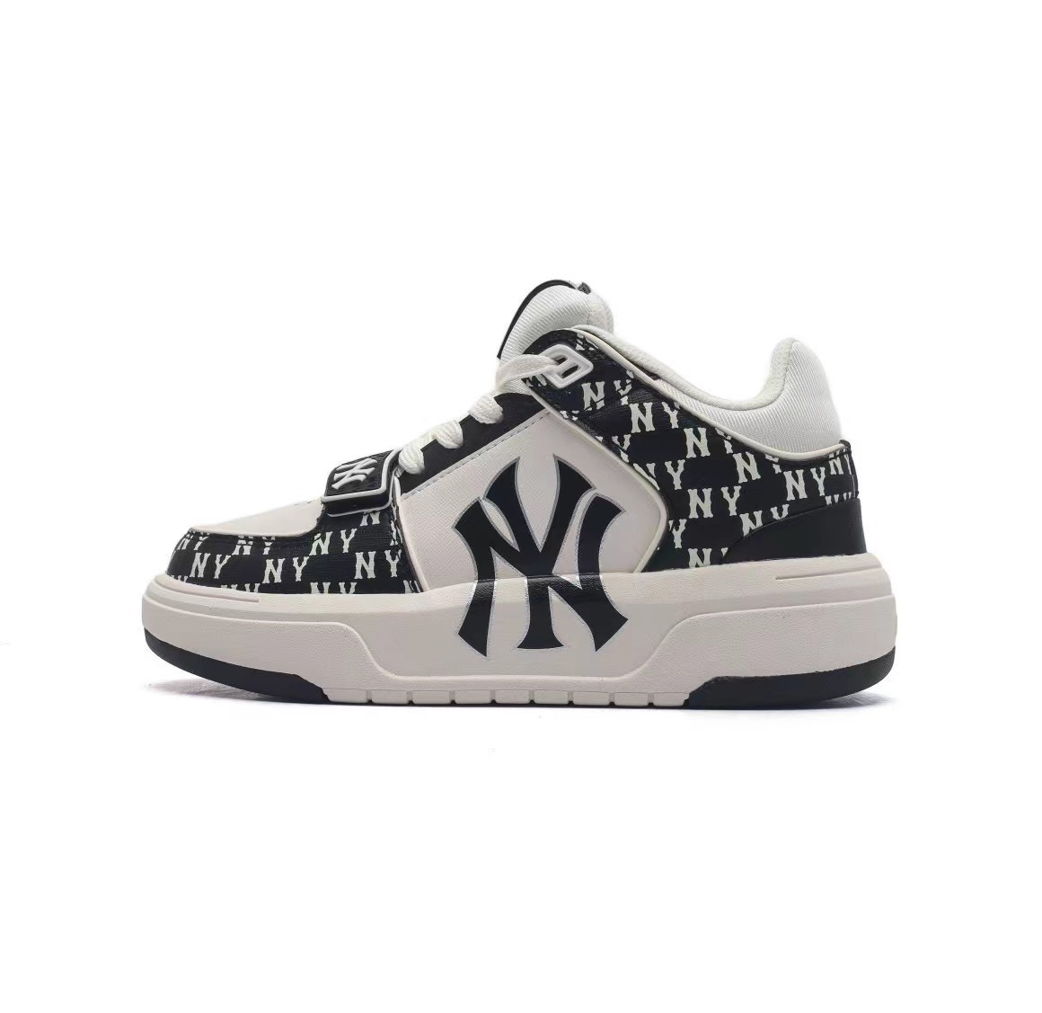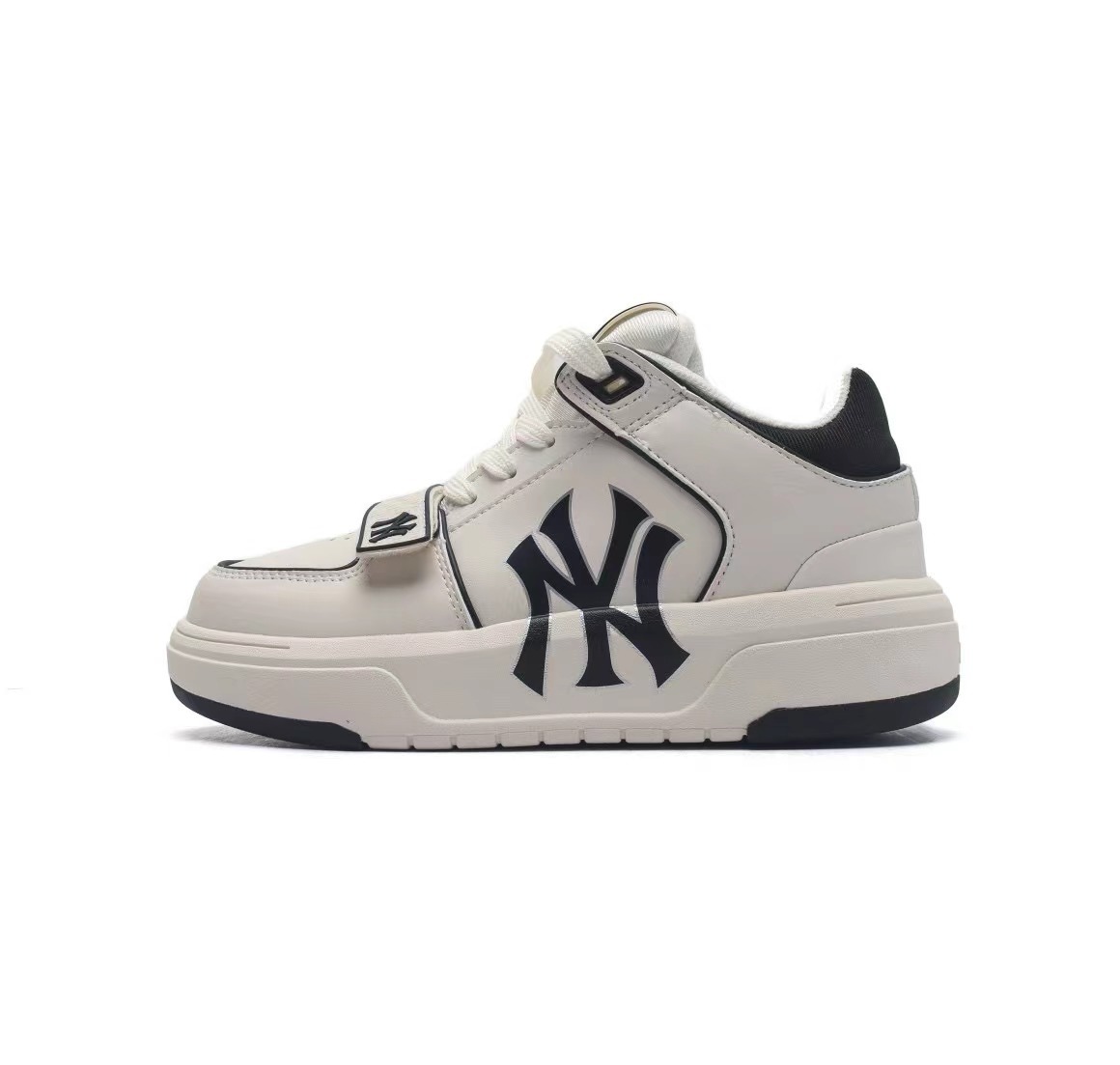 Putian Purehara MLB 미드탑 아빠 신발 NY 빅 라벨 Yankees 선배 키높이 운동화 5CM 커플 같은 스타일 여성 신발스토어 가기