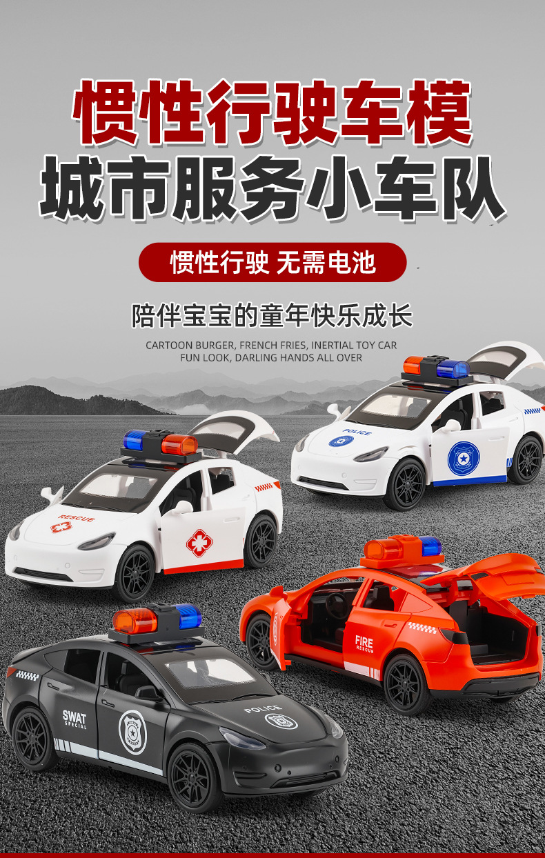 Douyin 관성 및 낙하 방지 어린이 소년 소녀 장난감 자동차 경찰 자동차 소방차 도어 오픈 자동차 모델 경찰차스토어 가기