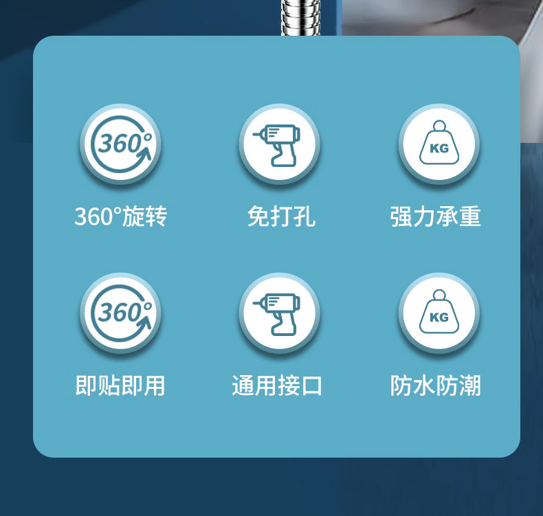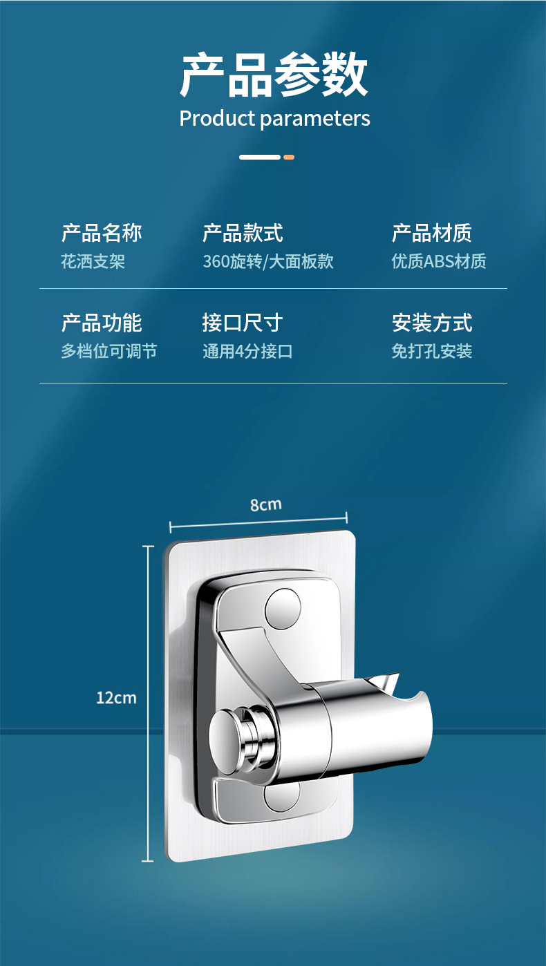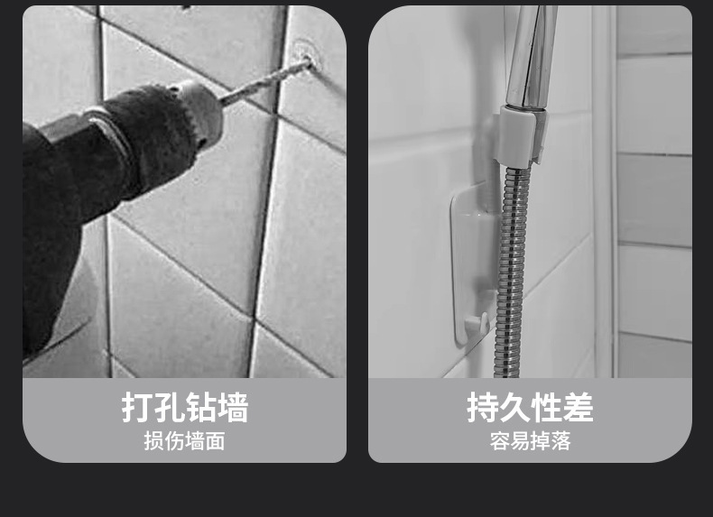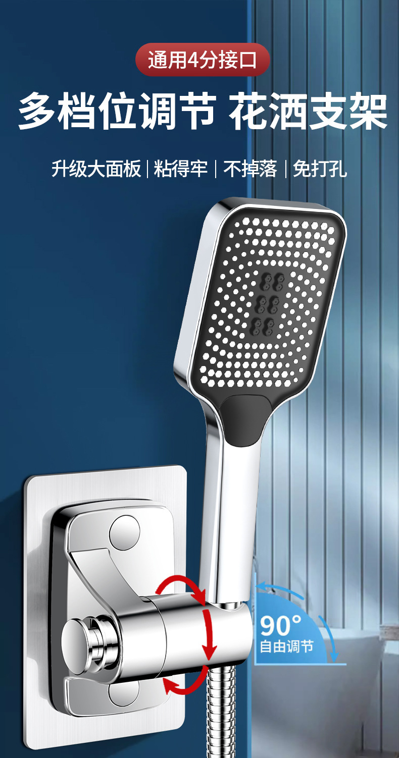 펀치 없는 샤워기 브래킷, 샤워헤드 홀더, 조절식 걸이형 샤워기 액세서리, 범용 홀더 베이스
