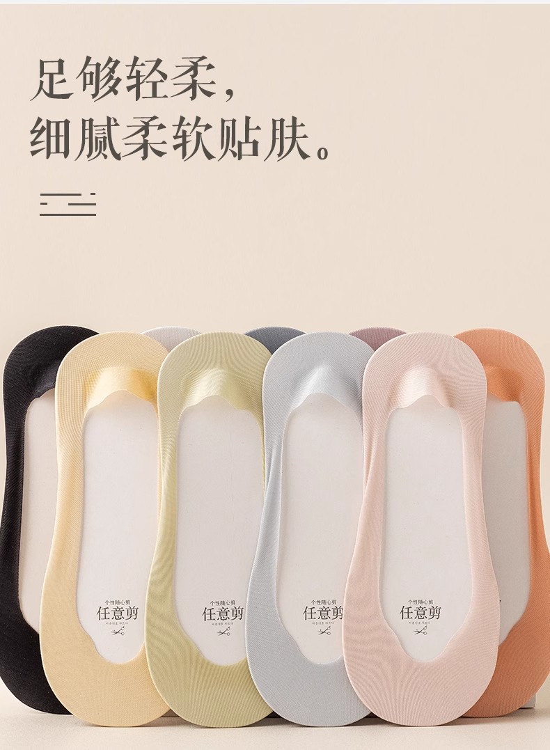 여성용 보트 양말, 여성용 힐이 없는 보이지 않는 양말, 여름용 얇은 메쉬 통기성 면 밑창 양말, 여성용 양말을 마음대로 자르기 쉬운 다용도 양말