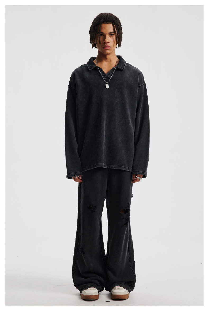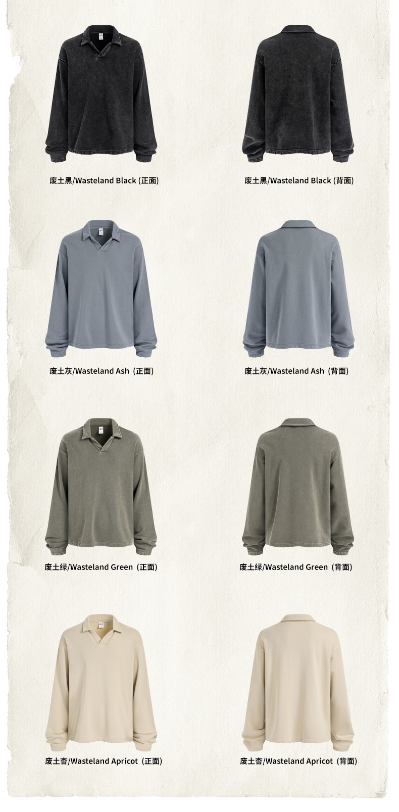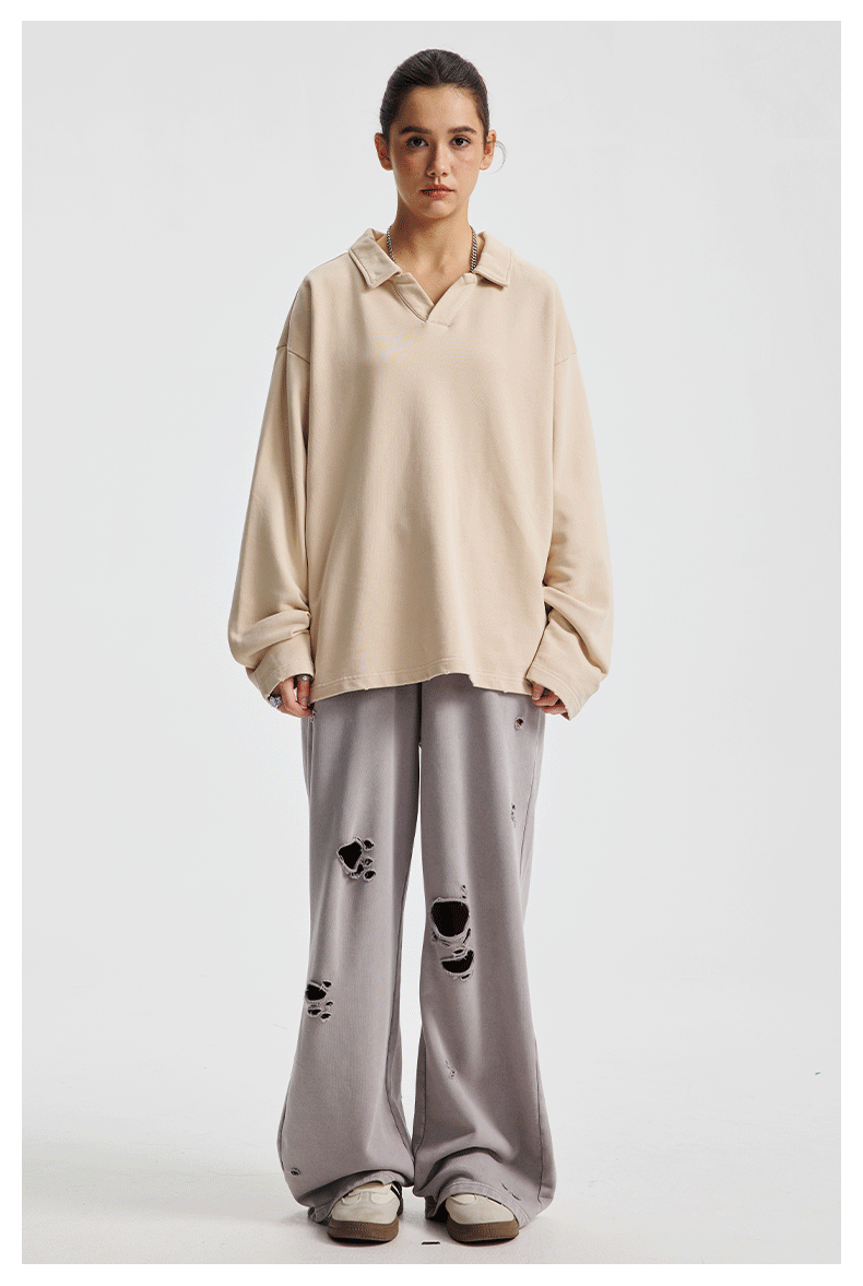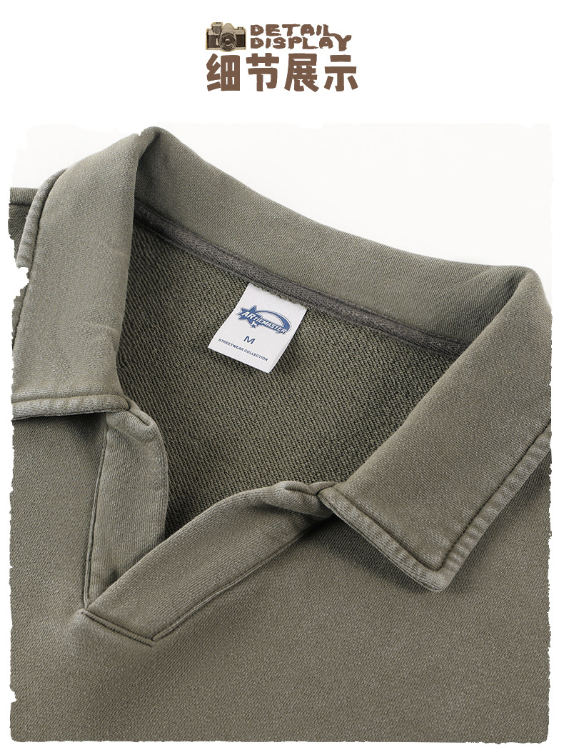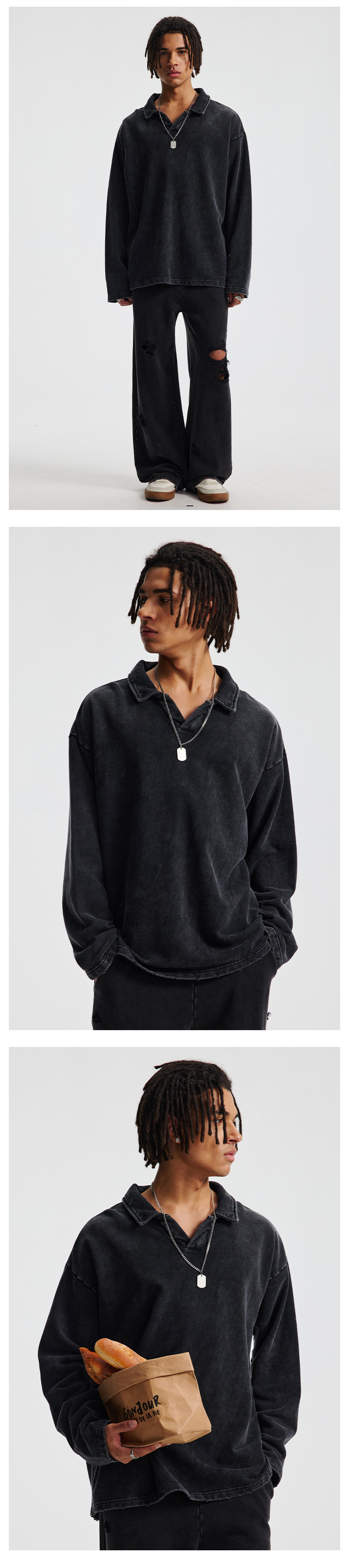 체인 트렌드 남성복 | 가을 겨울 신제품 라펠 400G 테리 긴팔 에지 디스트레스드 루즈 남녀공용 긴팔 티셔츠스토어 가기