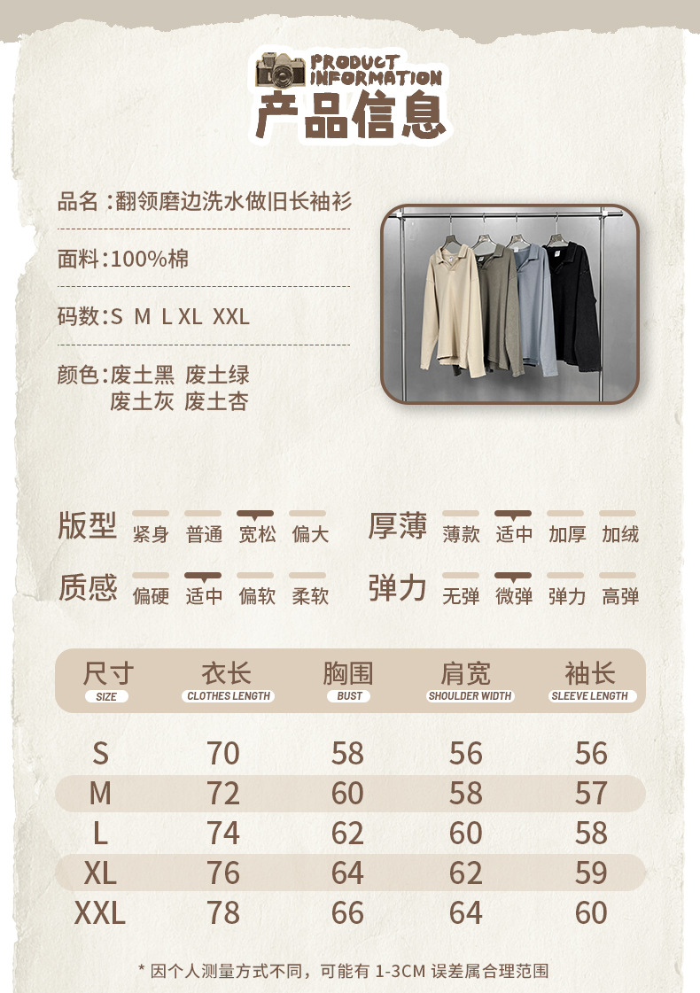 체인 트렌드 남성복 | 가을 겨울 신제품 라펠 400G 테리 긴팔 에지 디스트레스드 루즈 남녀공용 긴팔 티셔츠
