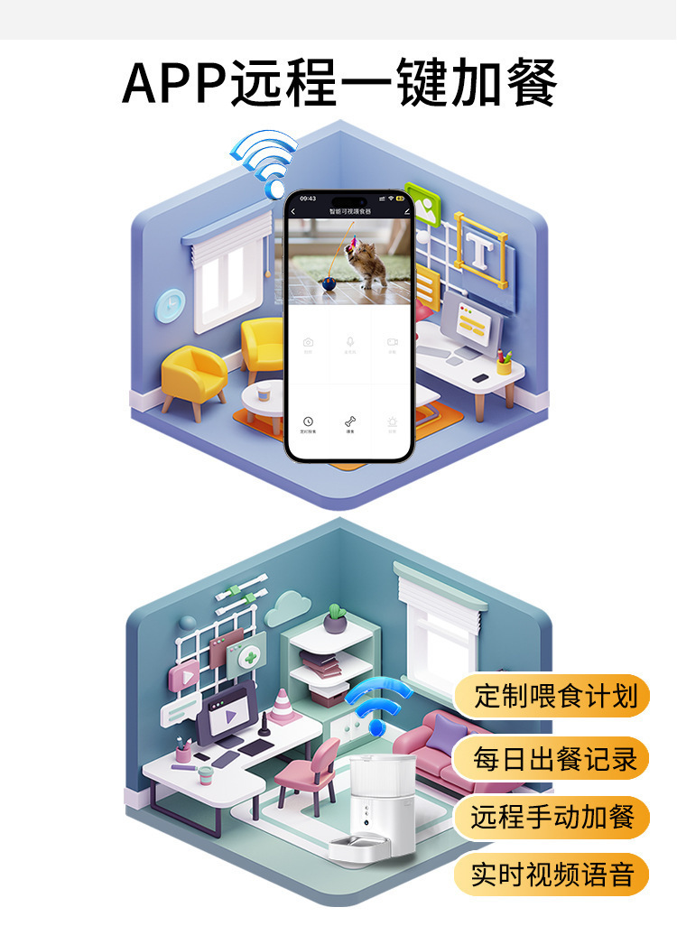 맞춤형 애완 동물 지능형 먹이 장비 휴대 전화 제어 타이밍 비디오 감시 3L 고양이 먹이 지능형 자동 먹이 공급 장치