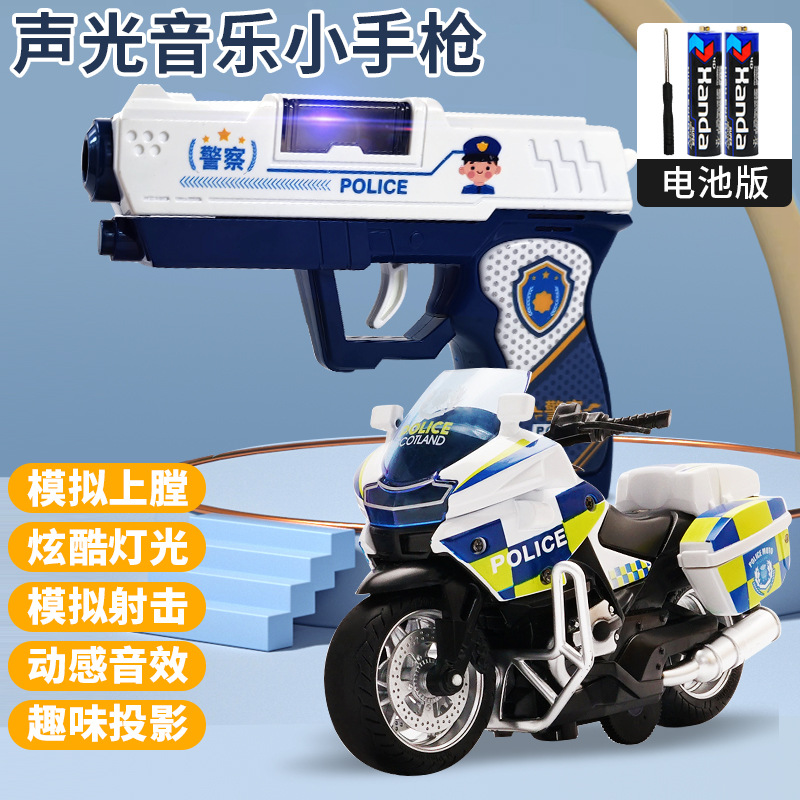 • [충전식 모델] 경찰 소리와 빛 프로젝션 총 + 합금 경찰 오토바이