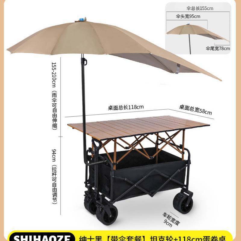 • 가족을 위한 노점 시리즈 [와이드 휠 + 우산이 달린 테이블 120개] 블랙