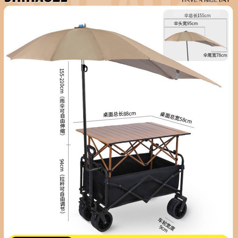 휴대용 트롤리, 캠핑 트레일러, 우산이 달린 야외 접이식 캠핑 트롤리, 비와 햇빛 차단 피크닉 트롤리스토어 가기
