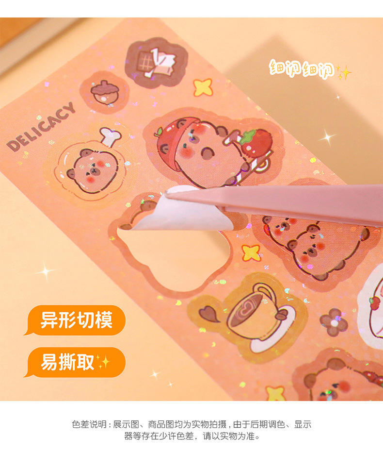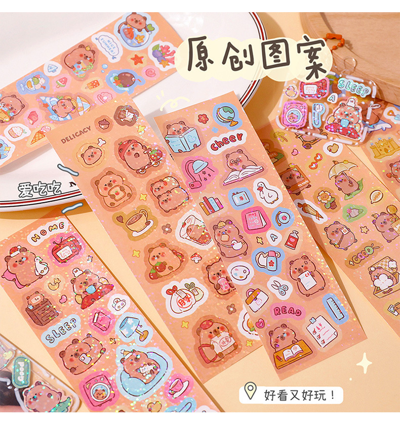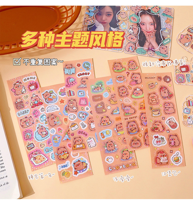 Kapibala Guka 긴 스트립 스티커 귀여운 Capybara 핸드북 스티커 어린이 DIY 스티커 PET 방수 워터 컵 스티커