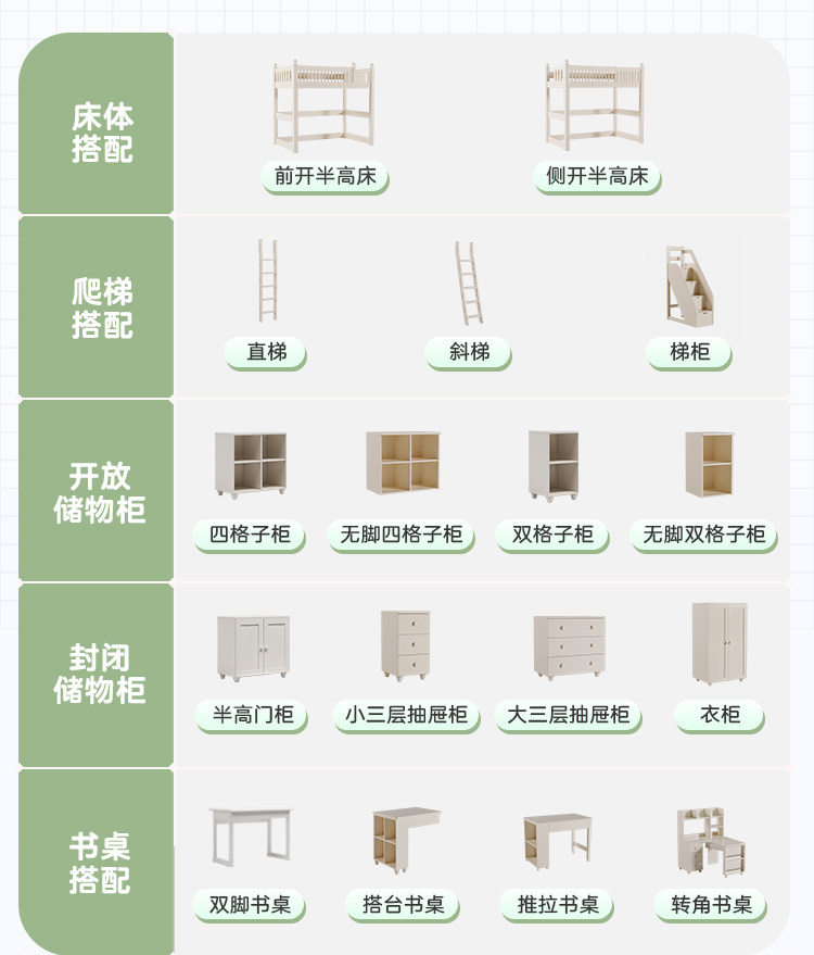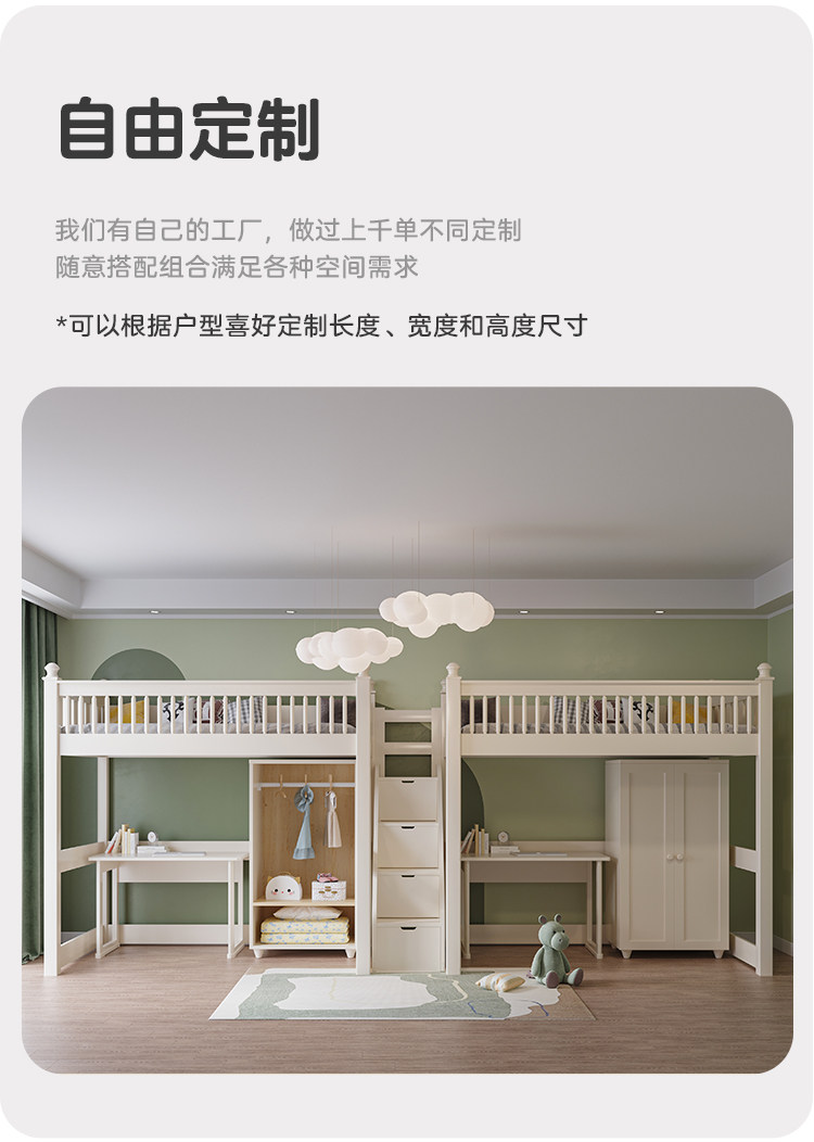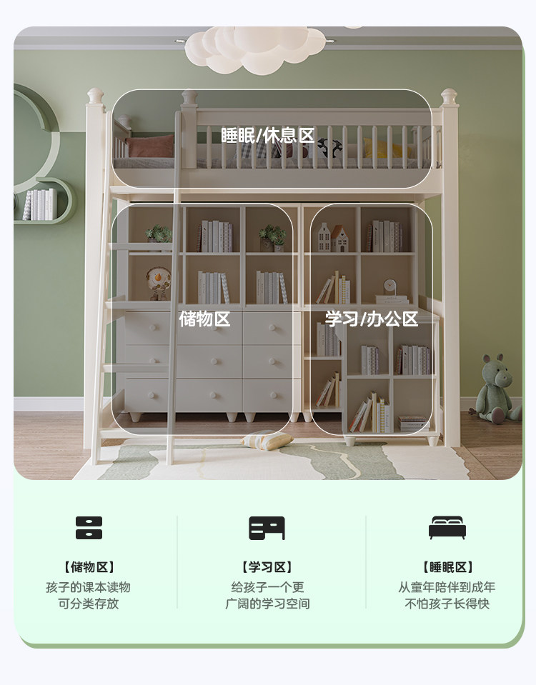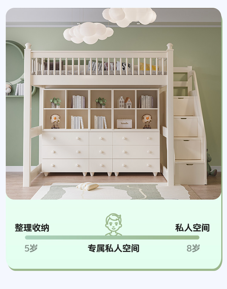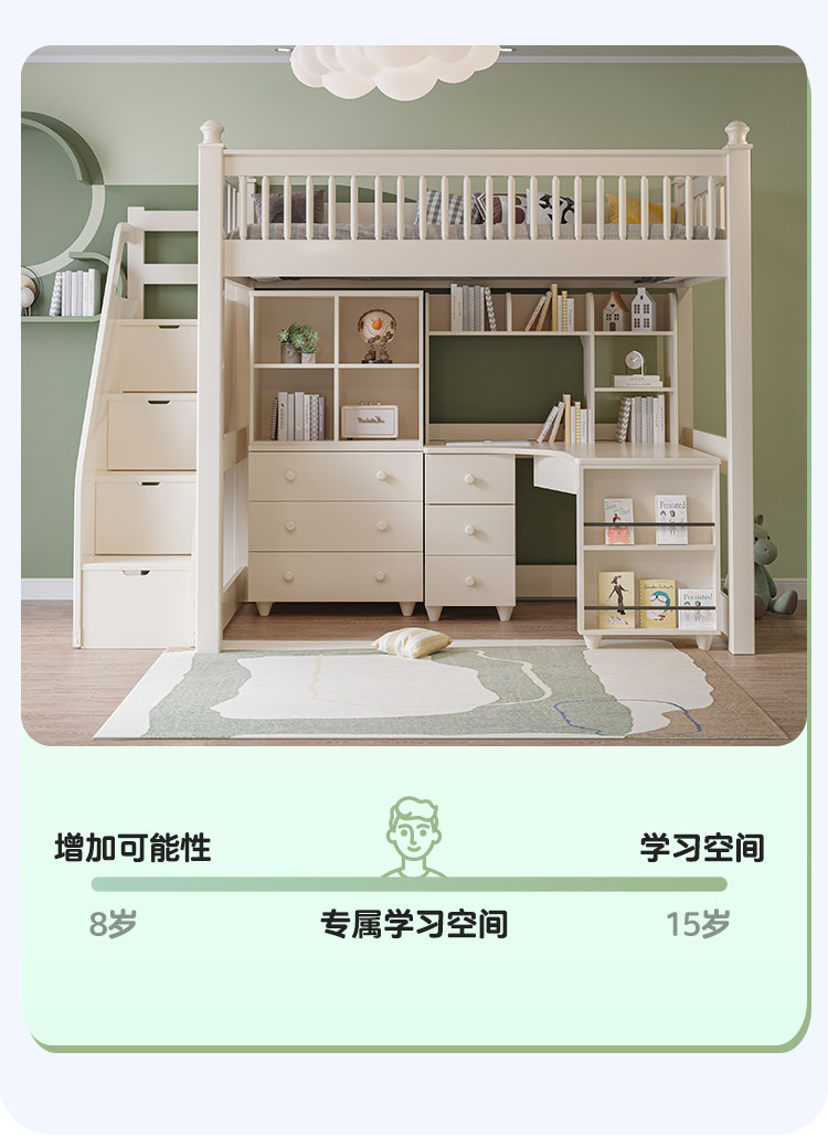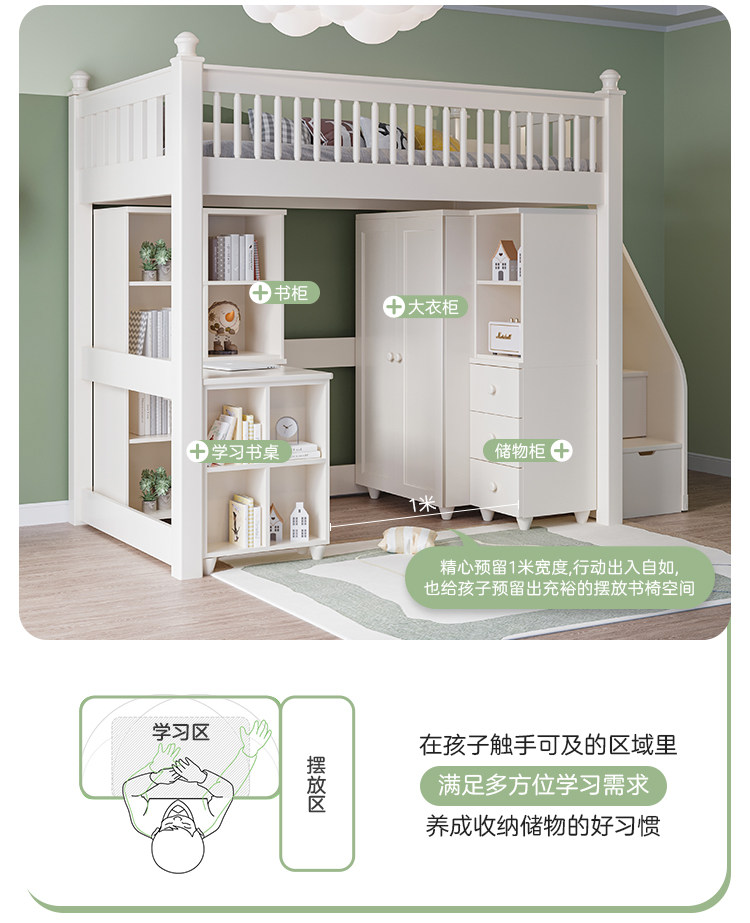 • 높은 침대 + 400 높이 사다리 캐비닛