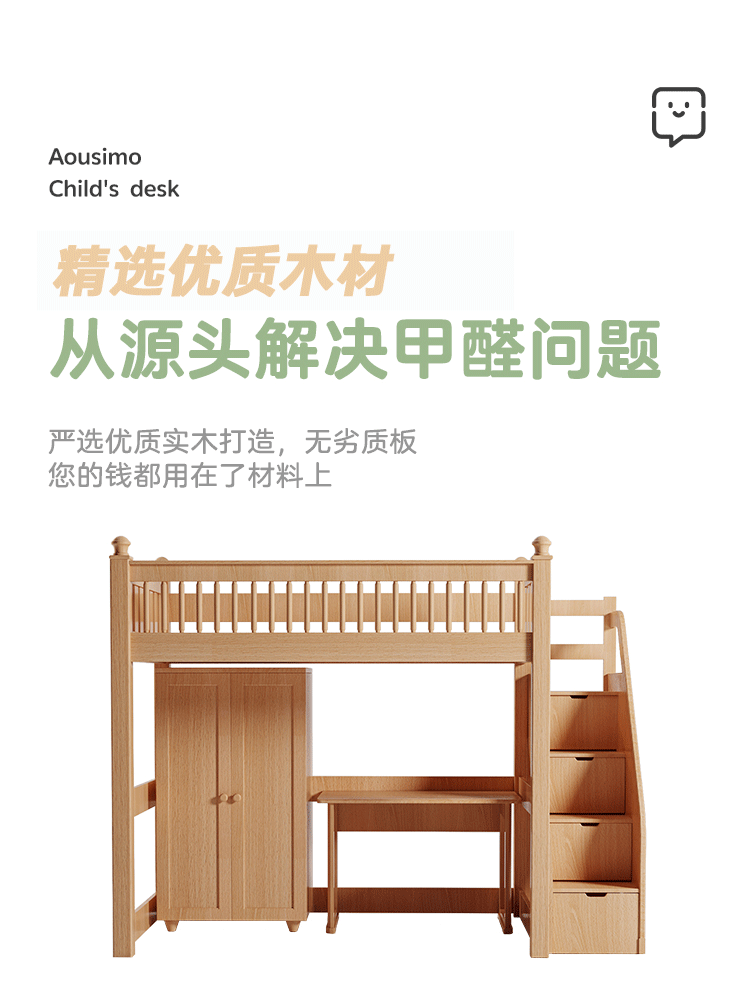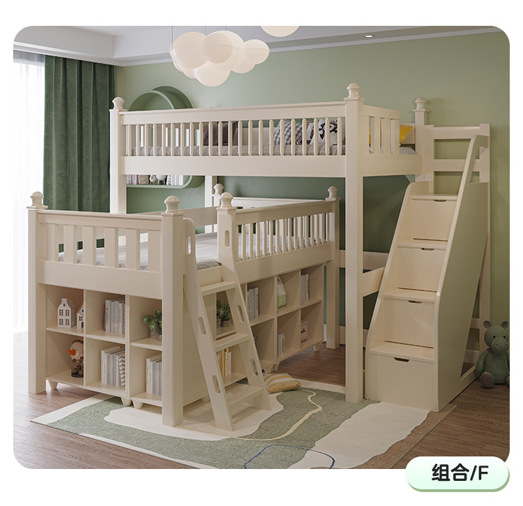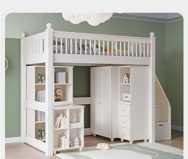 옷장이 있는 원목 이층 침대, 다기능 높은 침대, 상단 및 하단 테이블, 소형 아파트 어린이 침대 책상스토어 가기