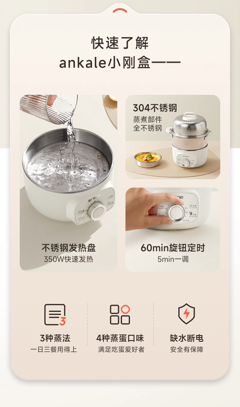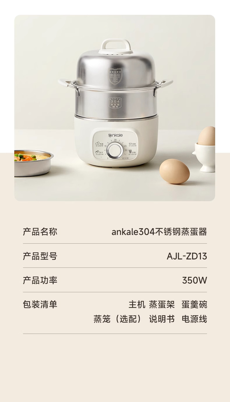 Ankale 계란찜기 자동 전원 끄기 가정용 새로운 작은 삶은 계란 아기 인형 아침 식사 스테인레스 스틸 케이지스토어 가기