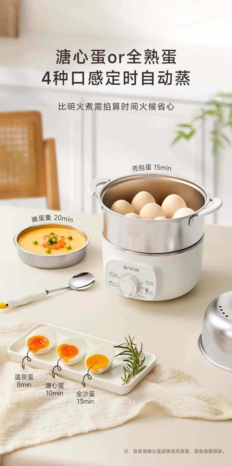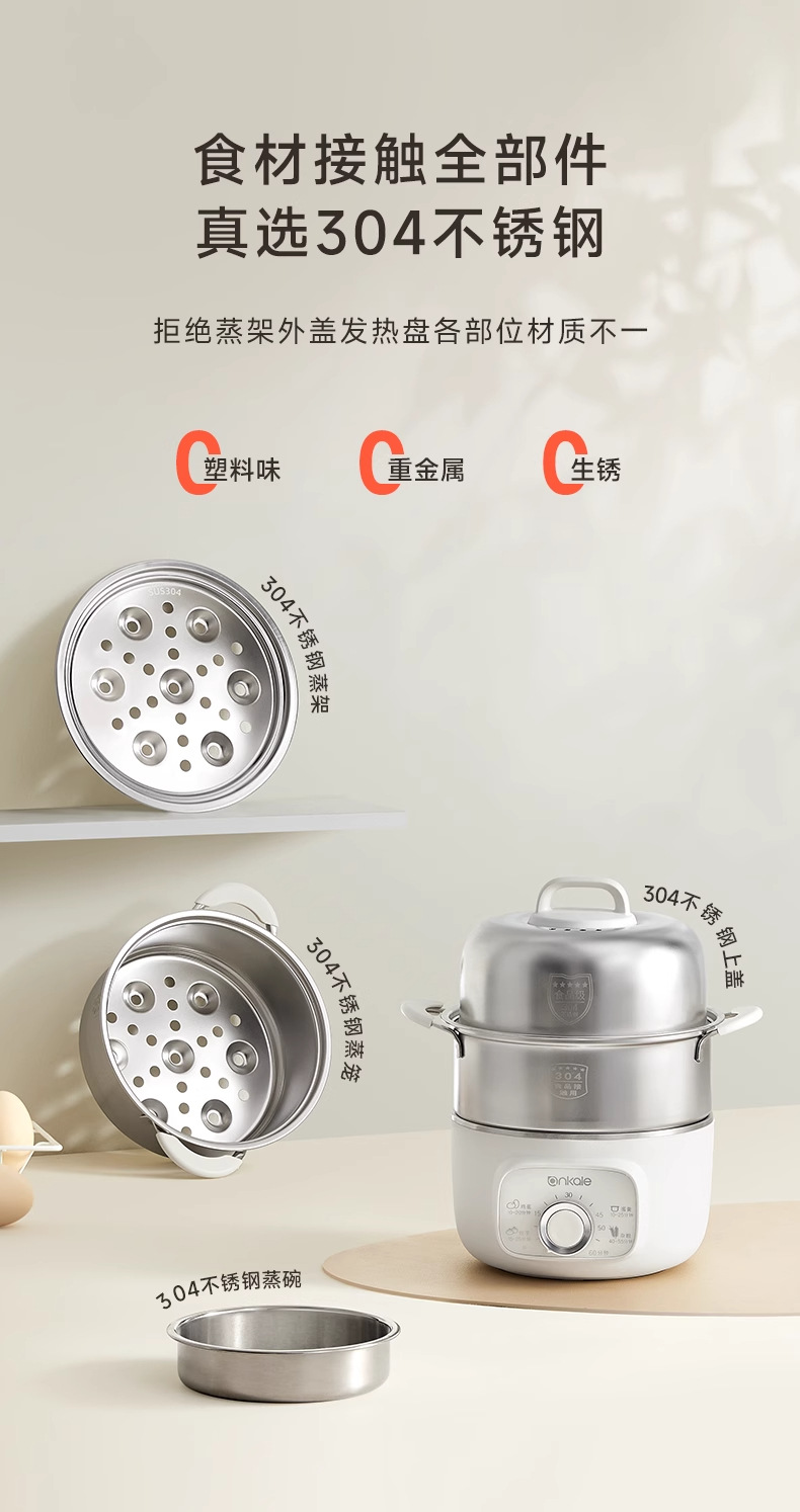 Ankale 계란찜기 자동 전원 끄기 가정용 새로운 작은 삶은 계란 아기 인형 아침 식사 스테인레스 스틸 케이지