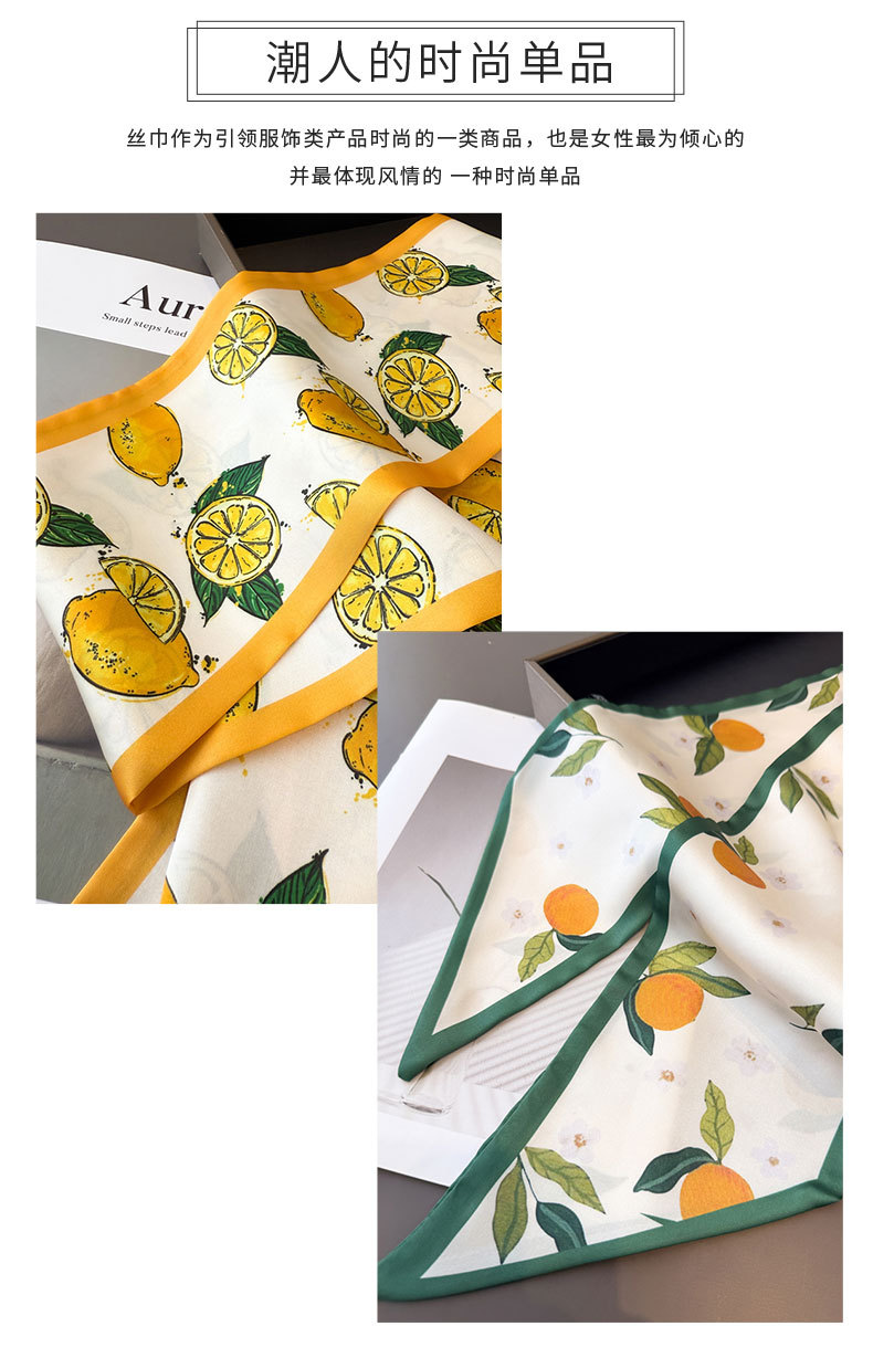 새로운 과일 프린트 더블 레이어 스카프, 장식용 실크 스카프, 통근용 봄 여름 베벨 헤어 스카프, 다용도 얇은 스트리머스토어 가기