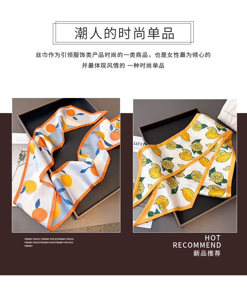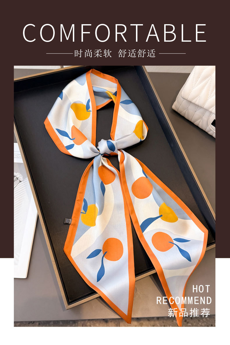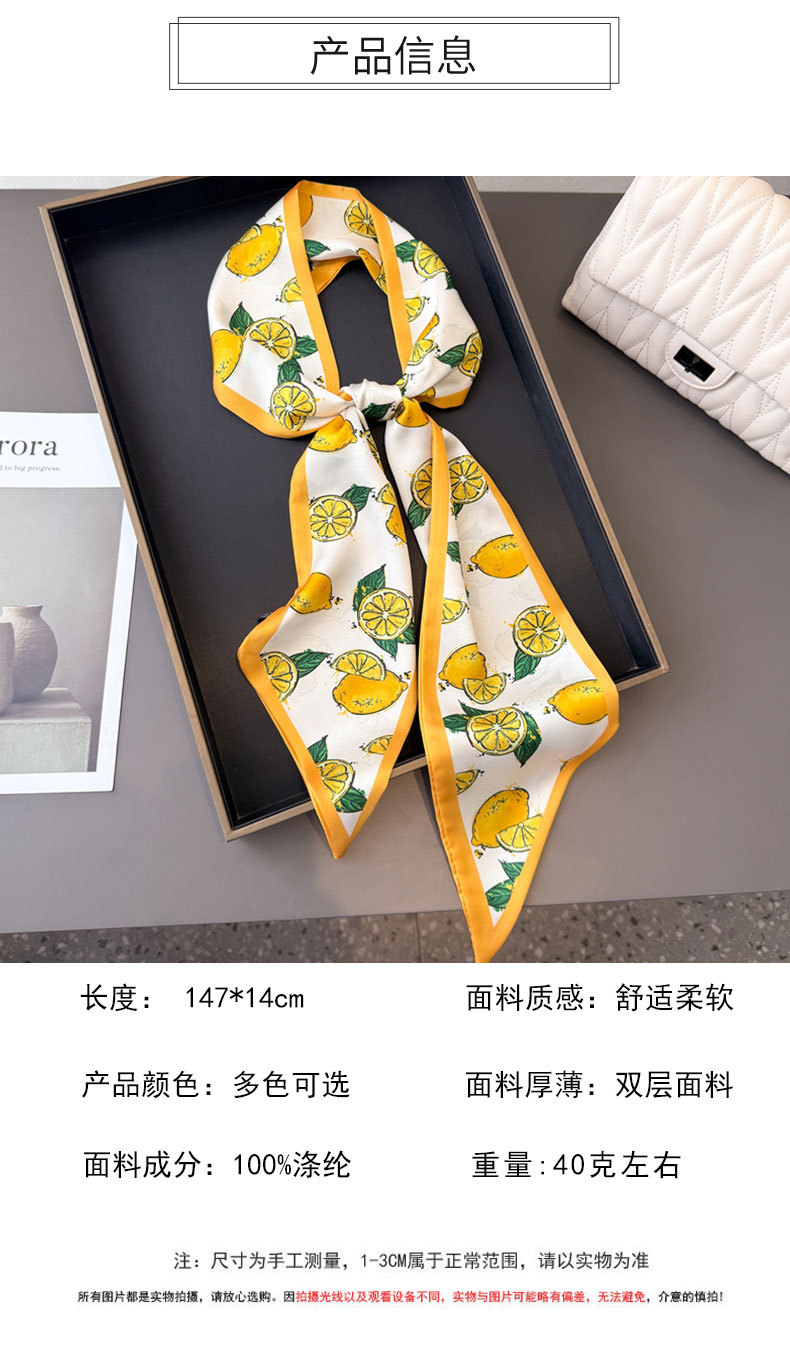 새로운 과일 프린트 더블 레이어 스카프, 장식용 실크 스카프, 통근용 봄 여름 베벨 헤어 스카프, 다용도 얇은 스트리머