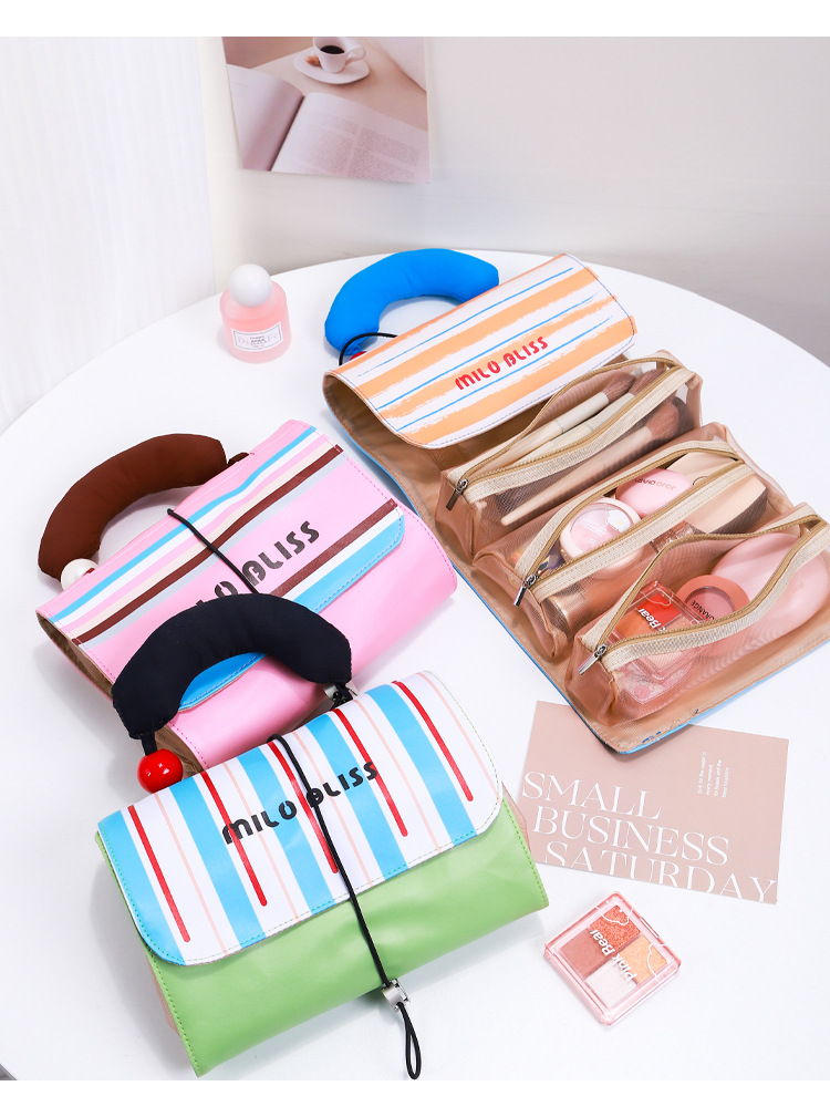 새로운 휴대용 대비 색상 화장품 가방 PU 가죽 여성 화장품 보관 가방 휴대용 보관 세면 용품 가방 시작스토어 가기