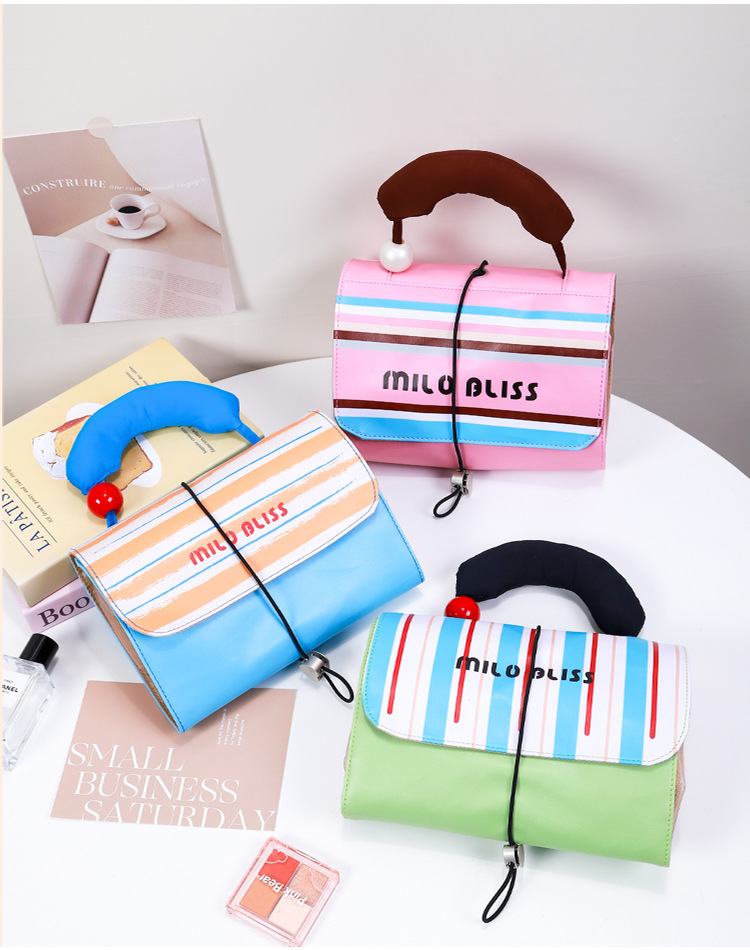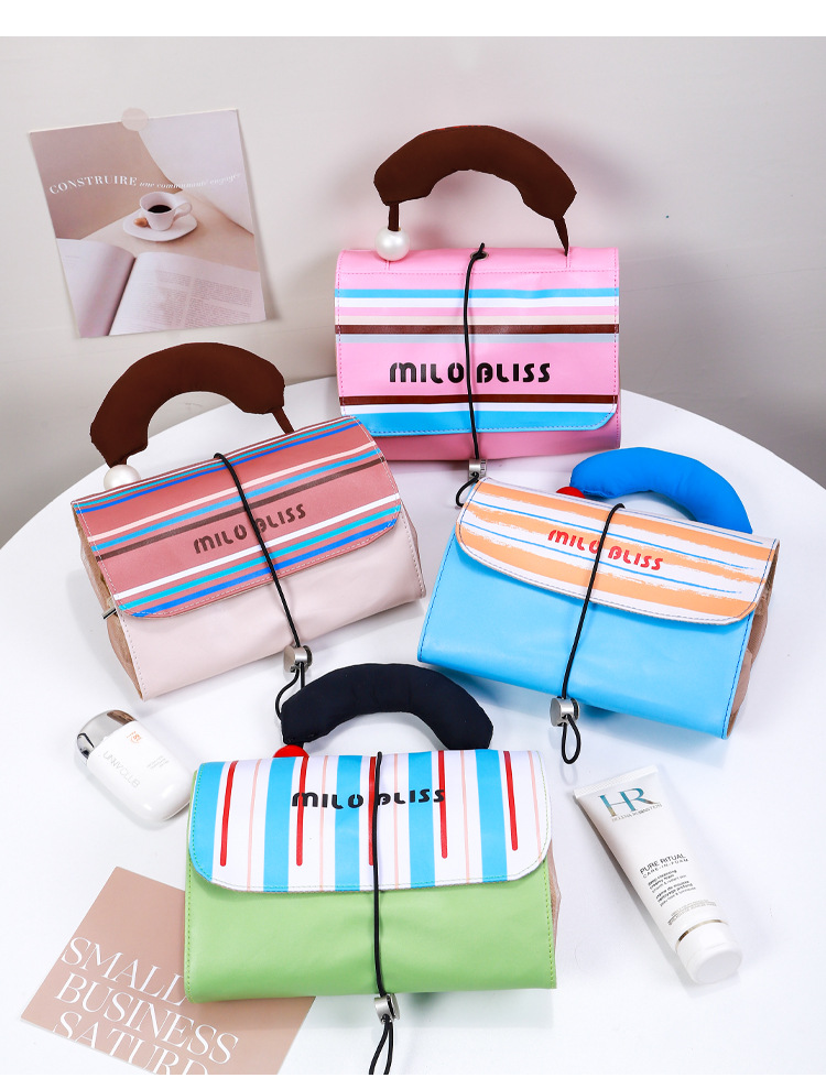 새로운 휴대용 대비 색상 화장품 가방 PU 가죽 여성 화장품 보관 가방 휴대용 보관 세면 용품 가방 시작