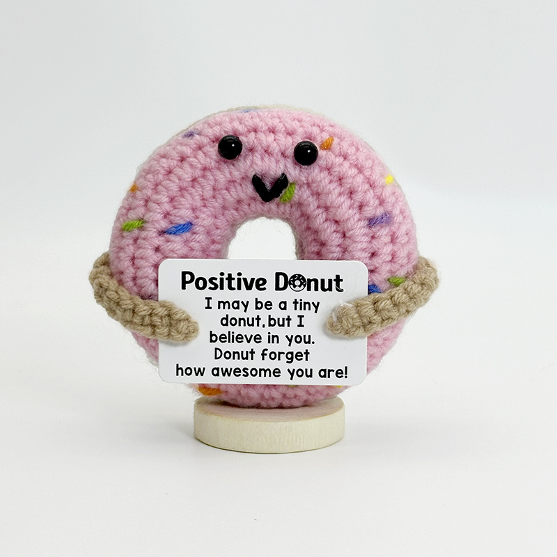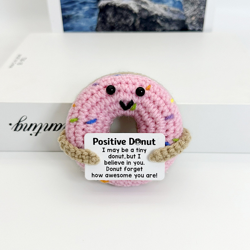 국경을 넘는 신제품 손으로 뜨개질한 인형 완제품, 도넛 포스 플래카드, 긍정적인 에너지 플래카드 인형, 데스크탑 장식 장식품