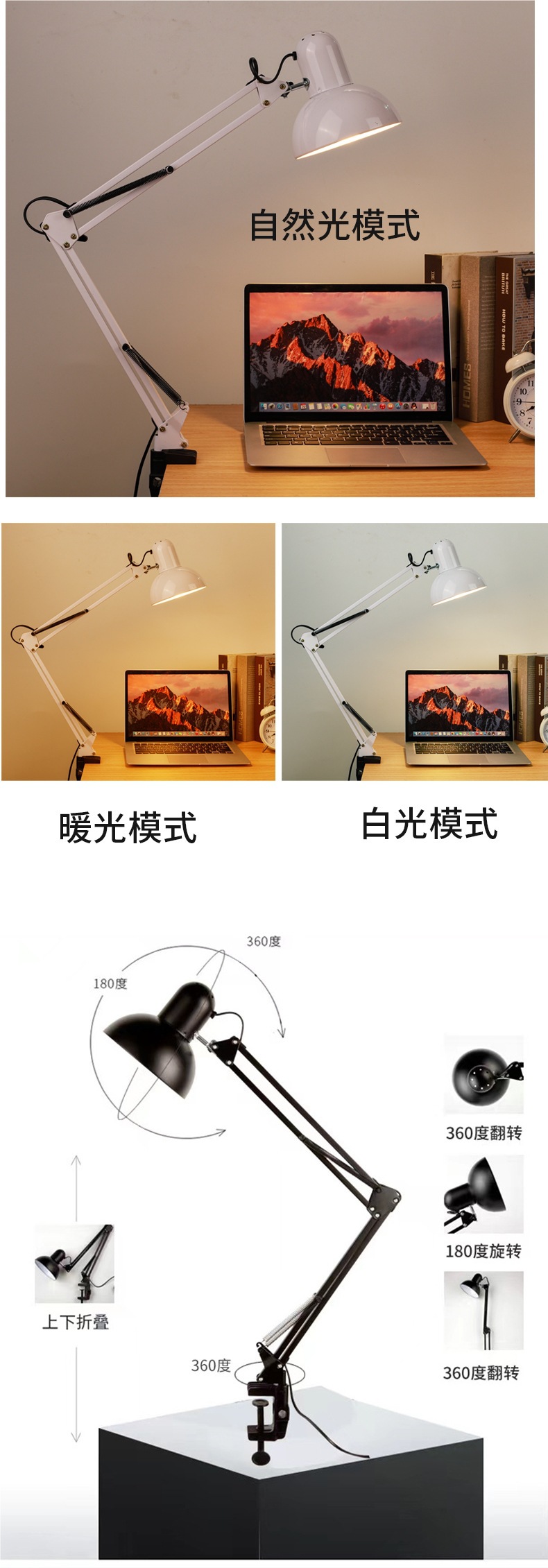사진 촬영을 위한 미국식 금속 긴 팔 매니큐어 테이블 램프, 눈 보호 데스크탑 보조 조명, LED 문신 및 속눈썹 도구 조명