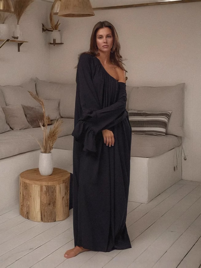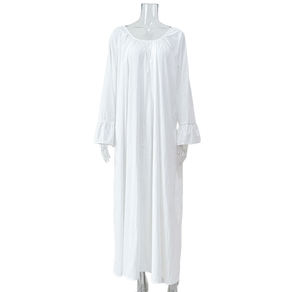 유럽풍 프렌치 스타일의 고급스러운 가을 롱 드레스, 여성용 홈웨어, 단색 루즈핏 원피스