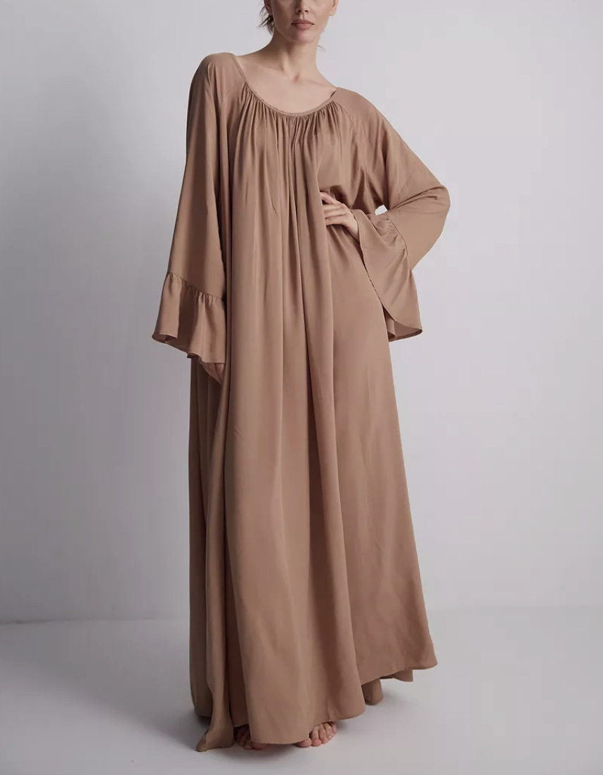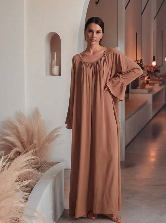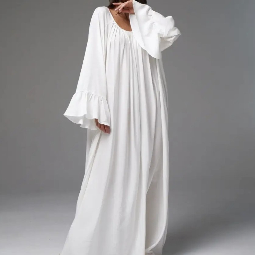유럽풍 프렌치 스타일의 고급스러운 가을 롱 드레스, 여성용 홈웨어, 단색 루즈핏 원피스스토어 가기