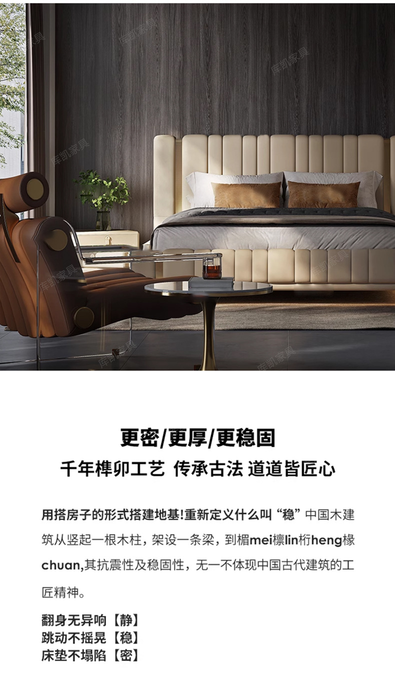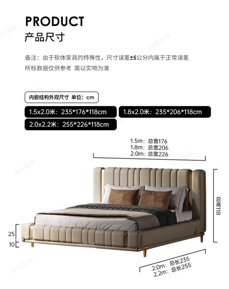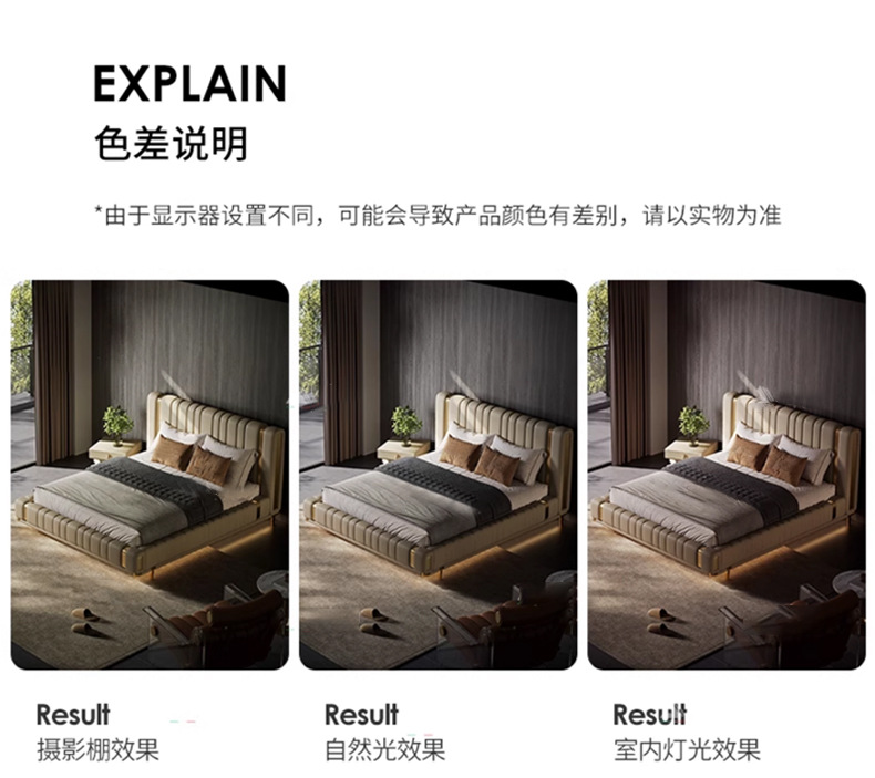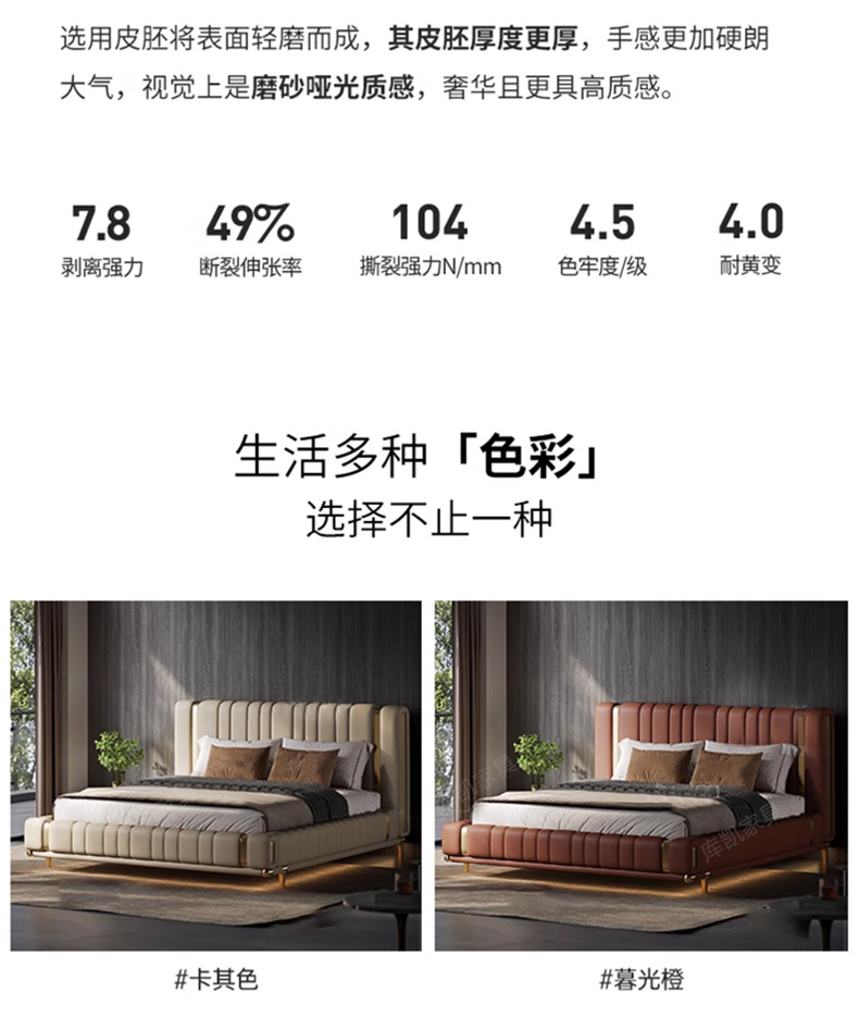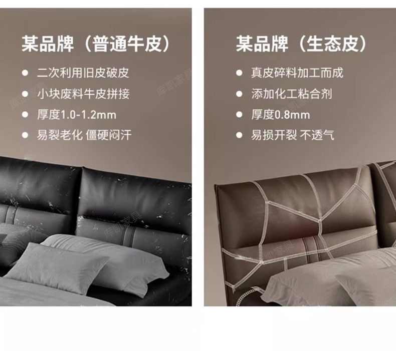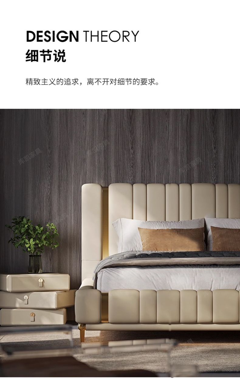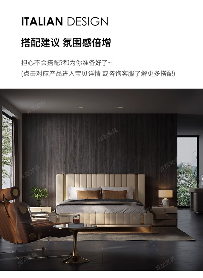 KuKai 가구 라이트 럭셔리 미니멀리스트 피아노 키 가죽 침대 마스터 침실 빌라 럭셔리 더블 소프트 가죽 1 층 소 가죽 침대스토어 가기