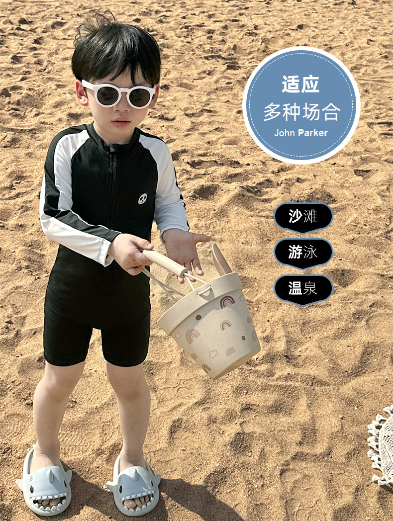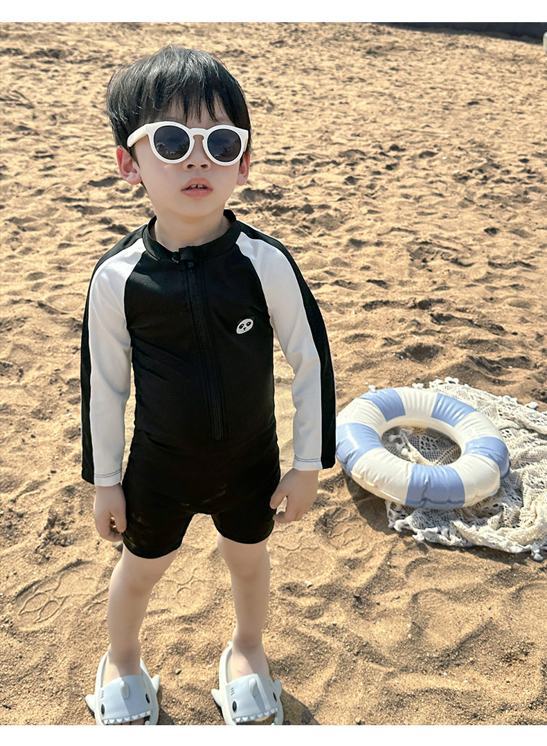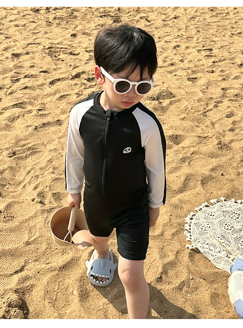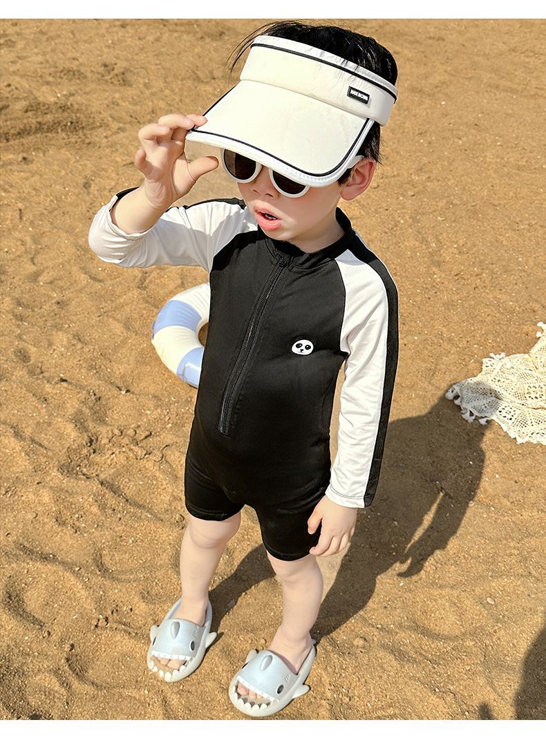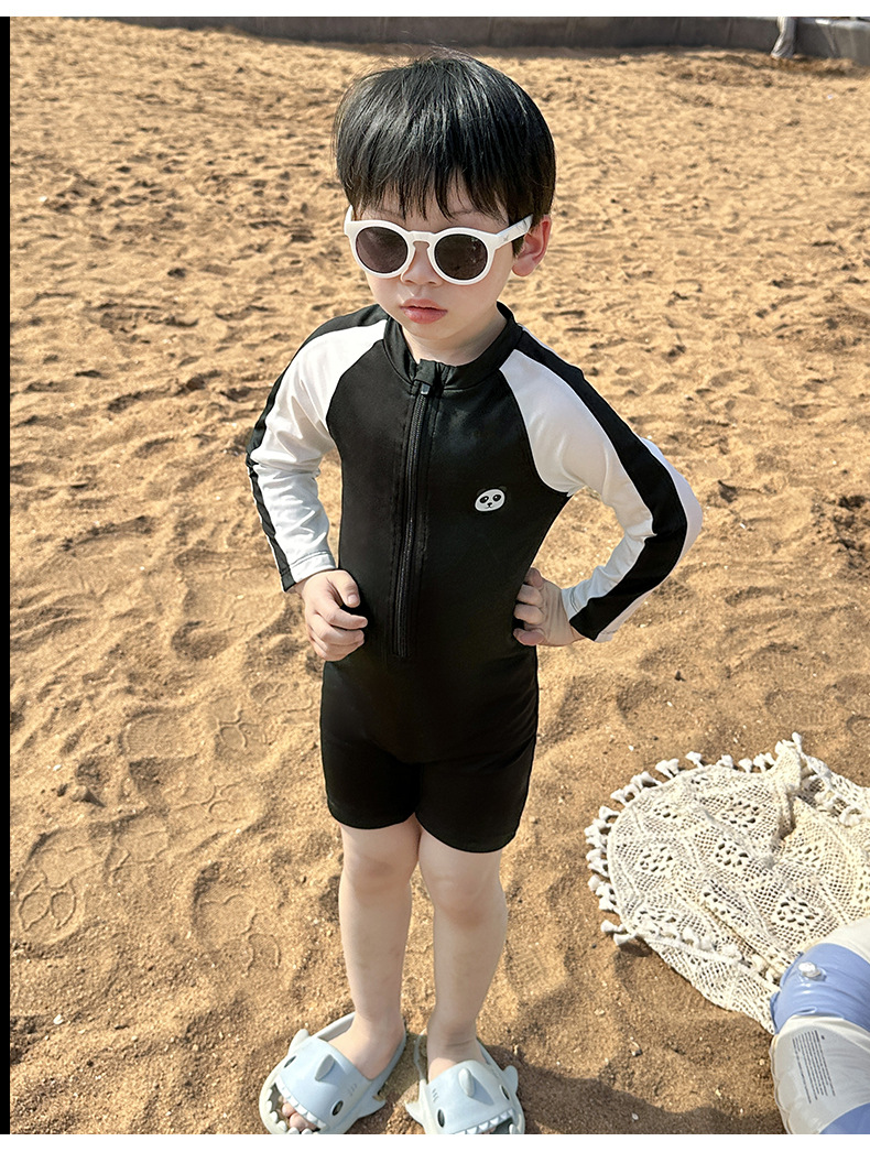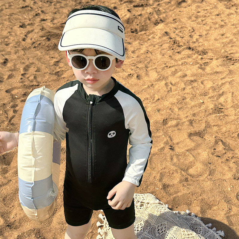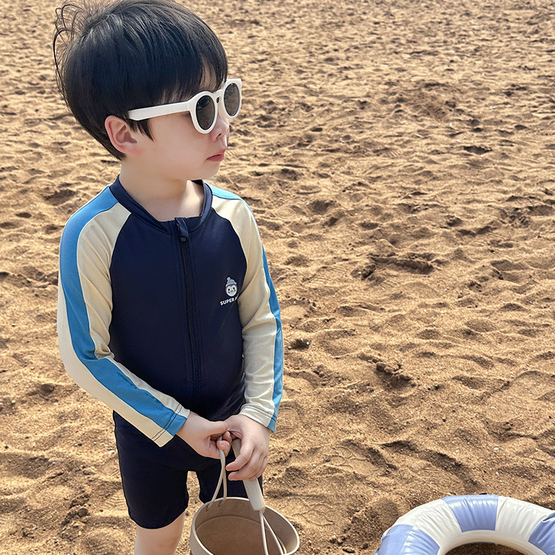 어린이 수영복 긴팔 원피스 만화 소년 수영복 귀여운 아기 자외선 차단제 속건성 후드 수영복 어린이를위한스토어 가기
