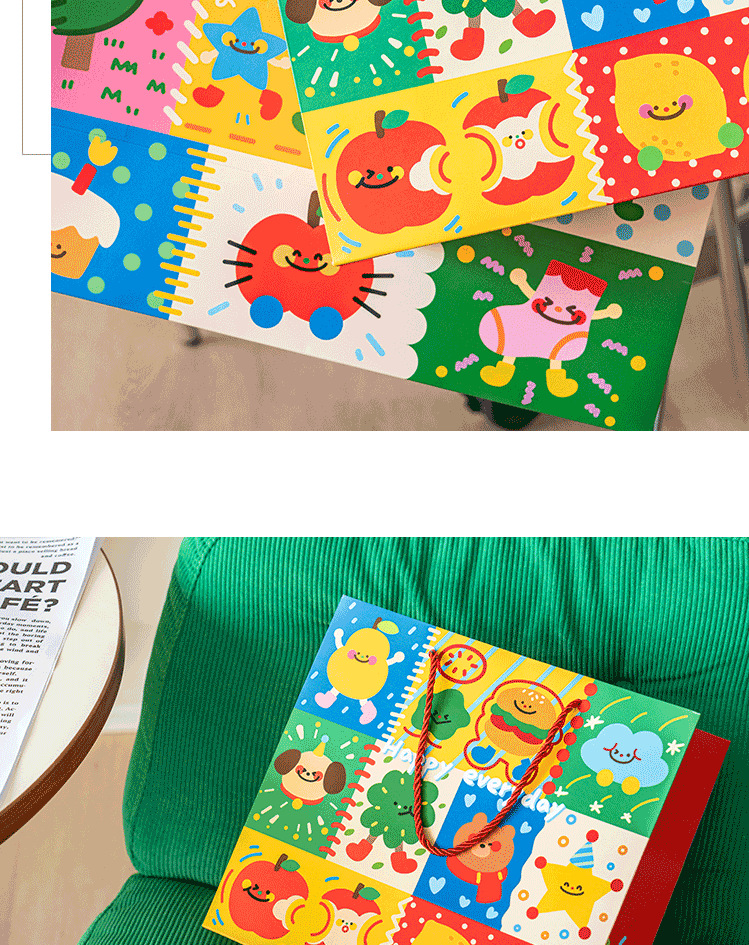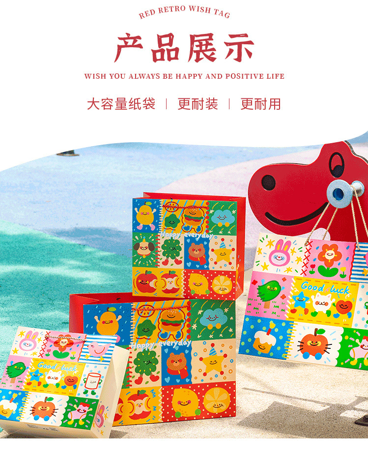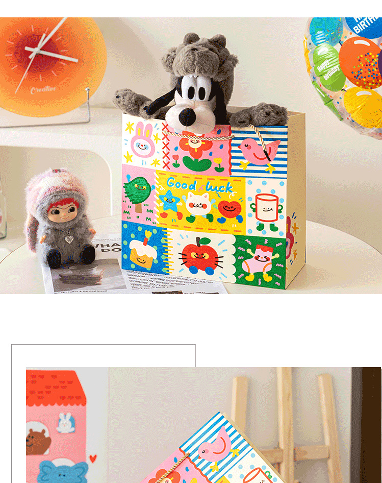 Guantao 만화 텍스트 핸드백 선물 가방 2025 만화 귀여운 크리 에이 티브 선물 가방 핸드백 종이 가방스토어 가기