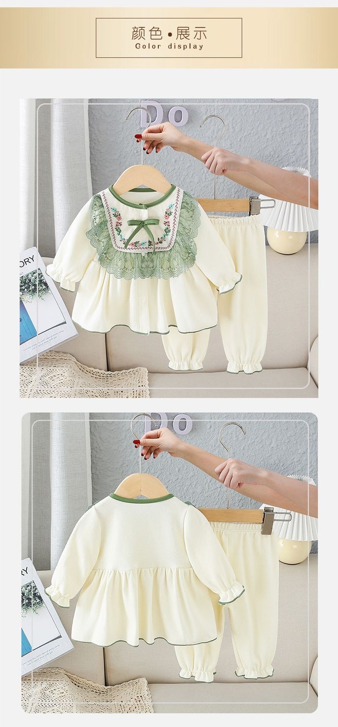 한국 스타일 소녀의 봄, 가을 얇은 가정 의류 아기 순면 투피스 세트 아기 긴팔 잠옷 레이스 공주 정장스토어 가기
