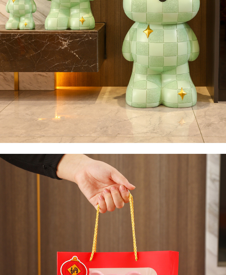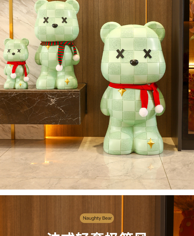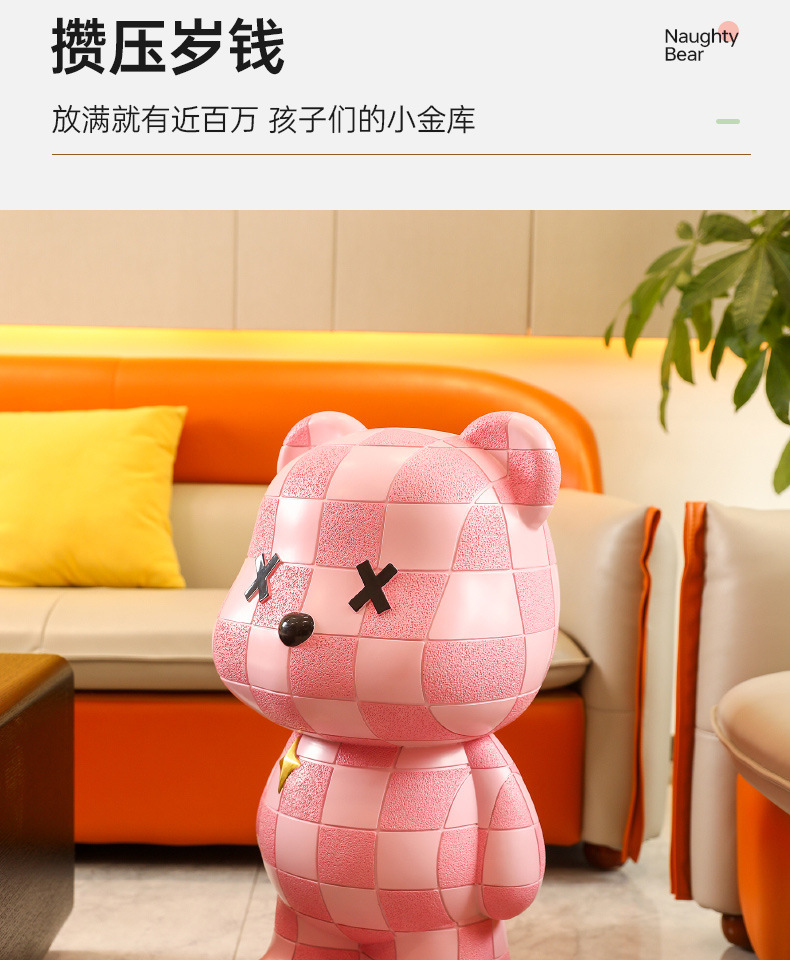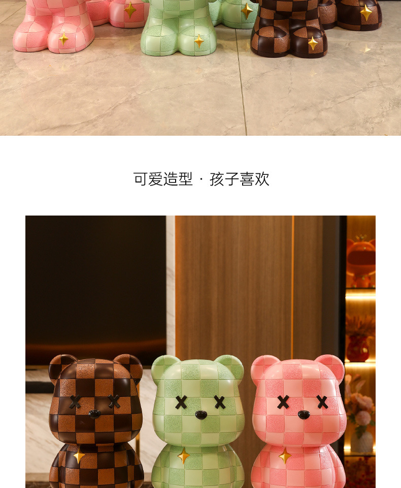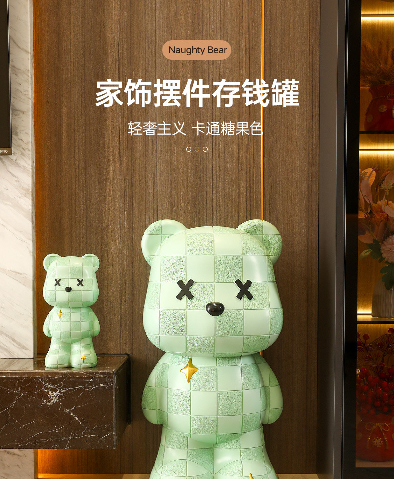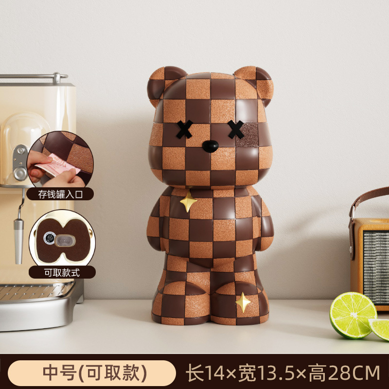 크리 에이 티브 현대 격자 무늬 곰 폭력적인 곰 돼지 저금통 거실 입구 바닥 다기능 장식품 크리 에이 티브 장식