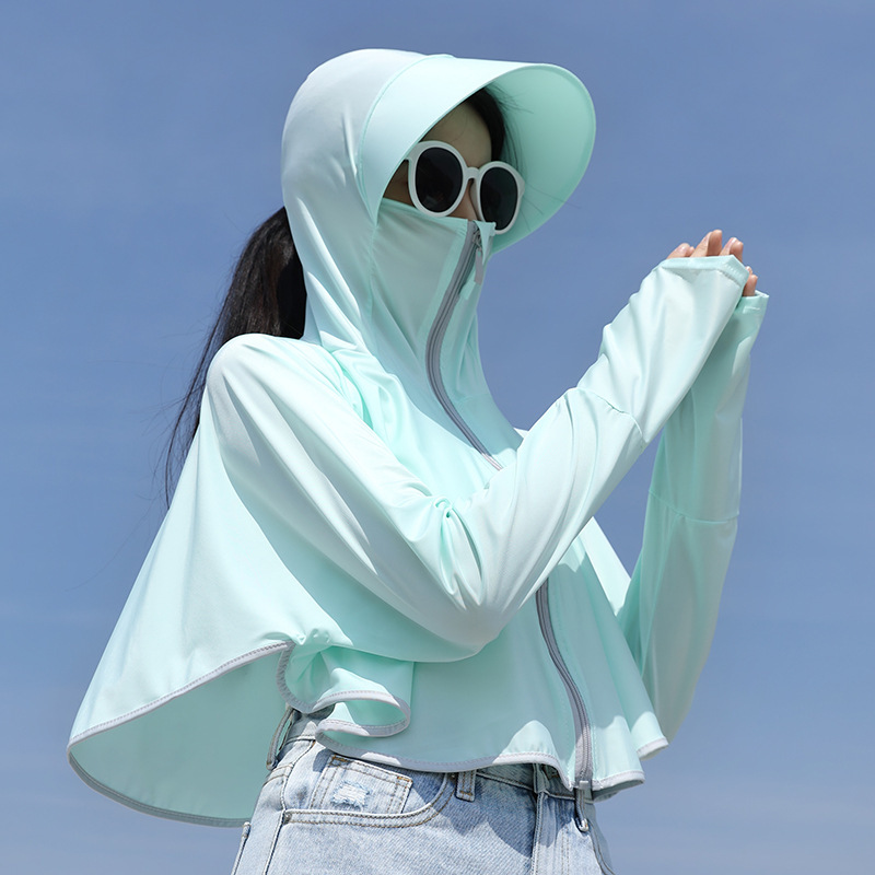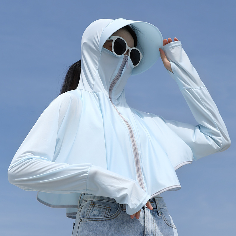 여성용 자외선 차단 의류 긴팔 2025 새로운 얼음 실크 자외선 차단 의류 여름 얇은 사이클링 자외선 차단 셔츠 자외선 차단 목도리