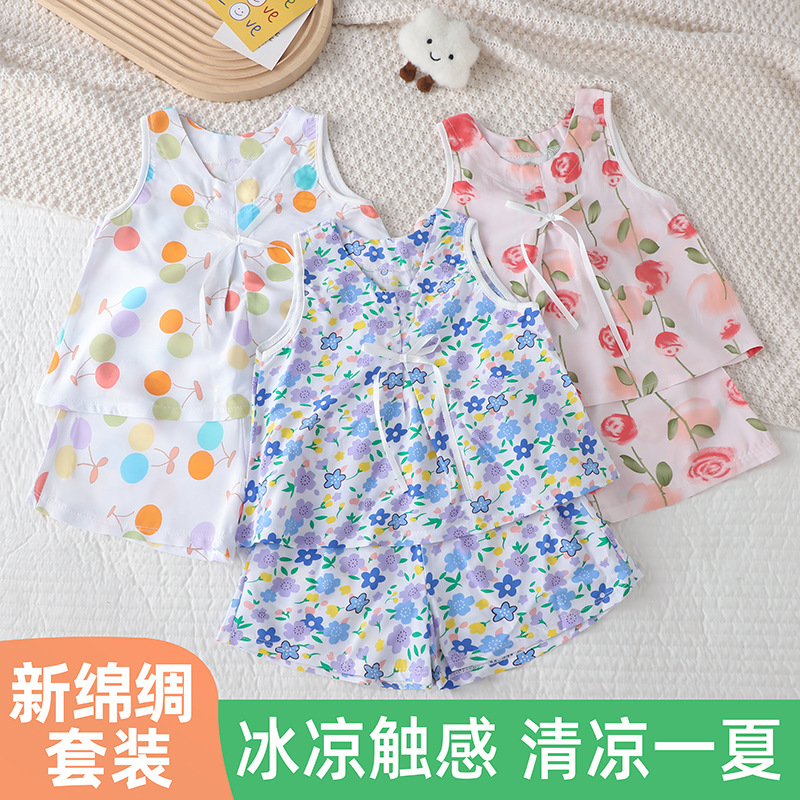 (면 실크) 새로운 2025 인기 면 실크 정장 스커트 어린이 편안하고 통기성이 뛰어난 아기 정장 멋진 소녀