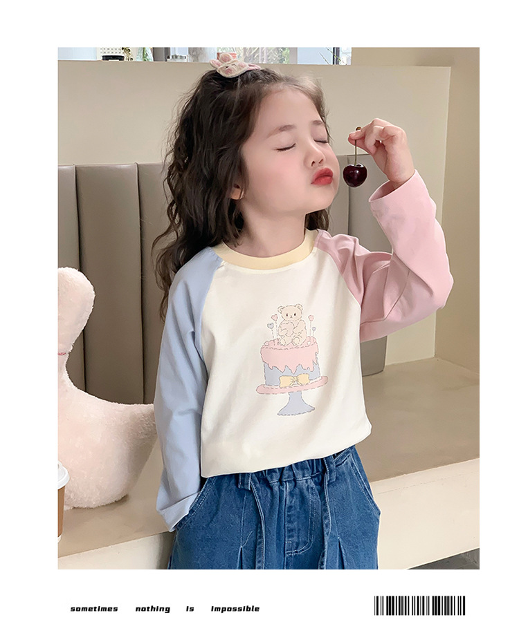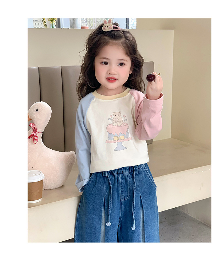 여자 티셔츠 봄, 가을 2025 새로운 어린이 스타일 봄 만화 아기 유행 캐주얼 코튼 봄 탑 T