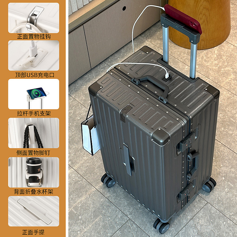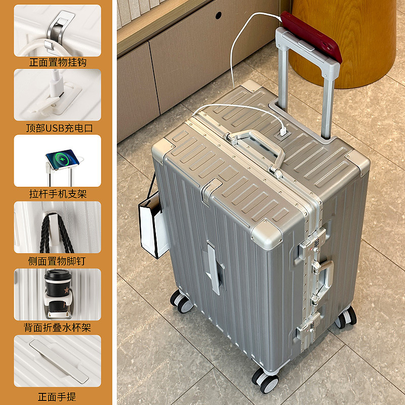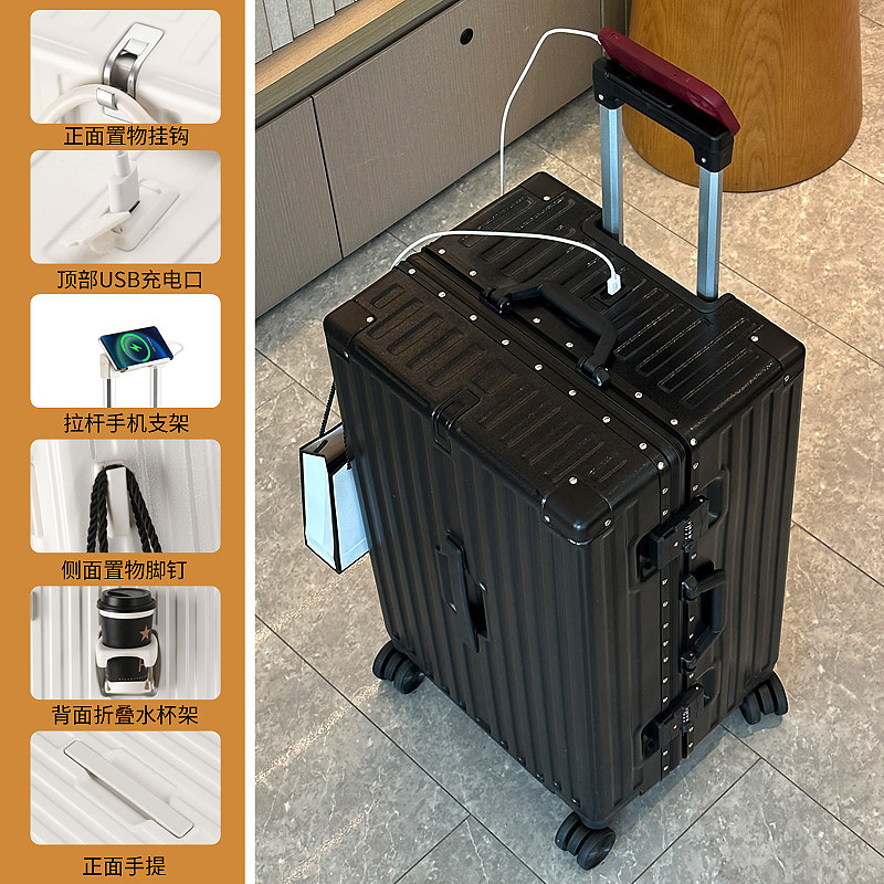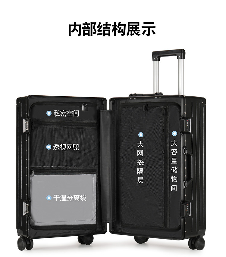 새로운 37 개의 대용량 가방 알루미늄 프레임 트롤리 케이스 학생 비밀번호 상자 남성과 여성을위한 강력하고 내구성이 뛰어난 가방