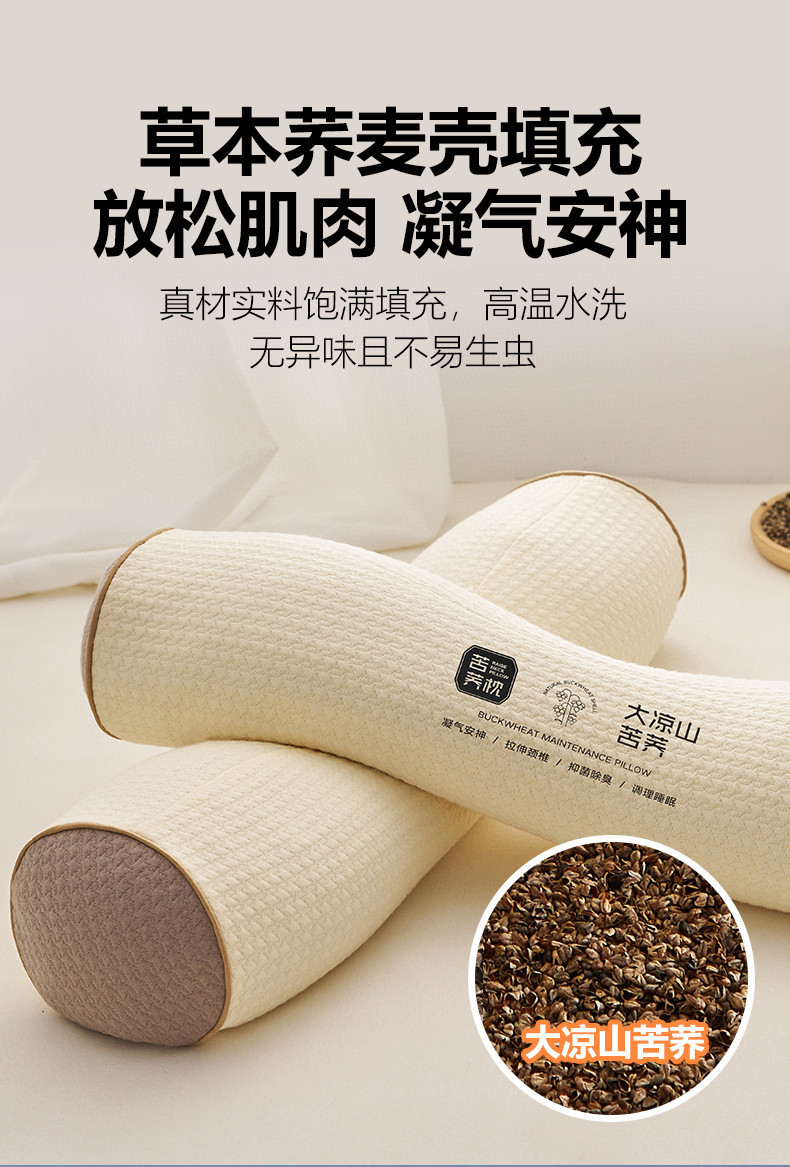 2025 새로운 신제품 니트 코튼 Daliangshan Bitter Soba 라운드 경추 목 베개 전체 메밀 껍질 허리 베개 베개 코어스토어 가기