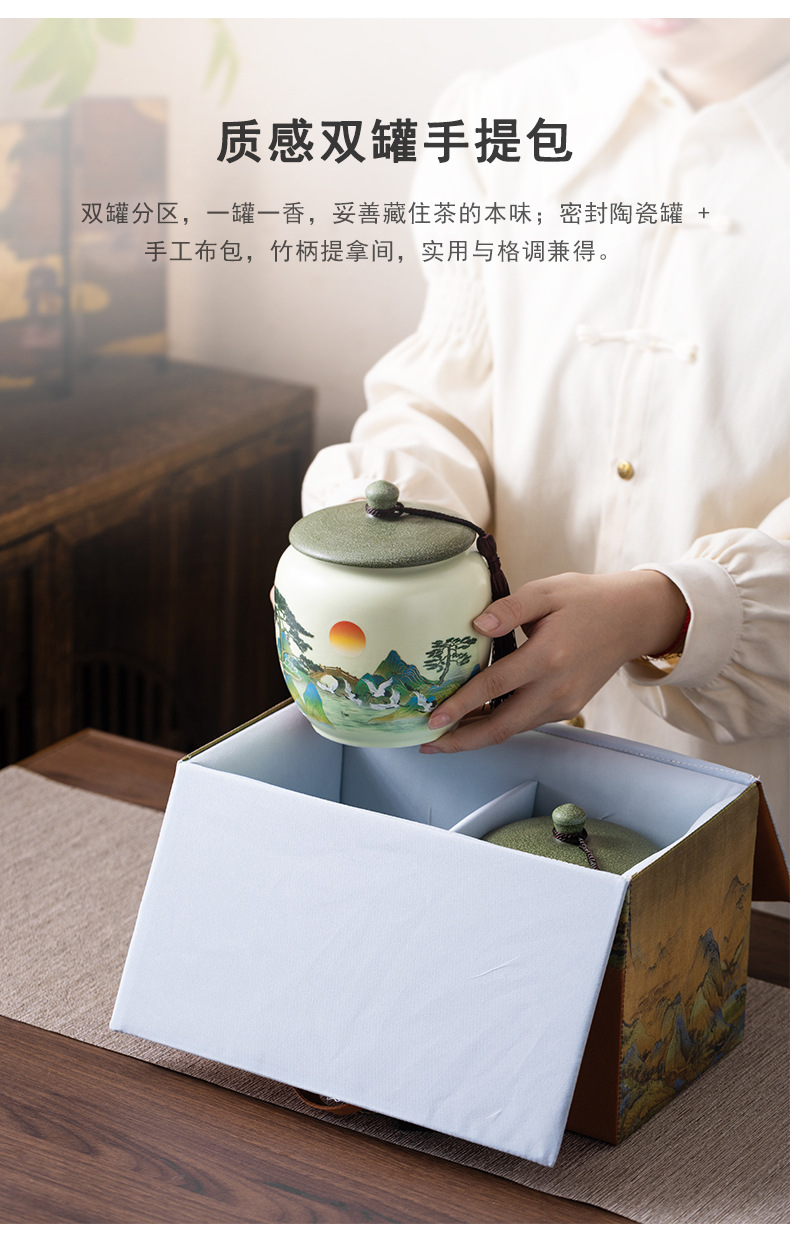 • Qianli Jiangshan 더블 캔 녹색 + 차 캔