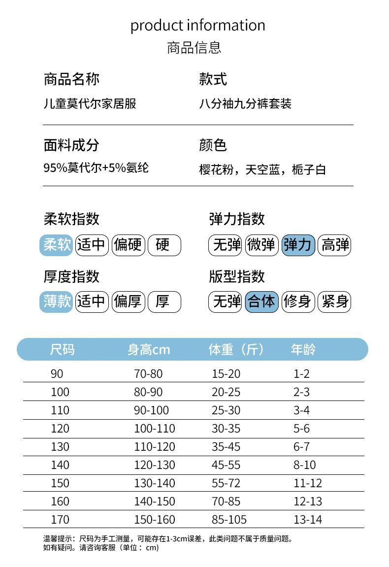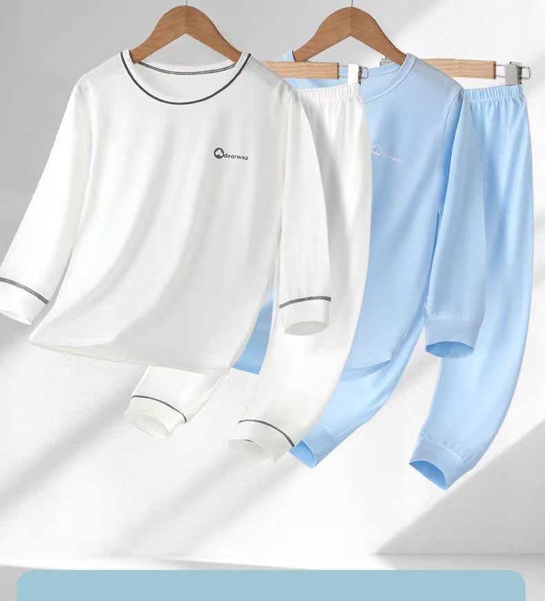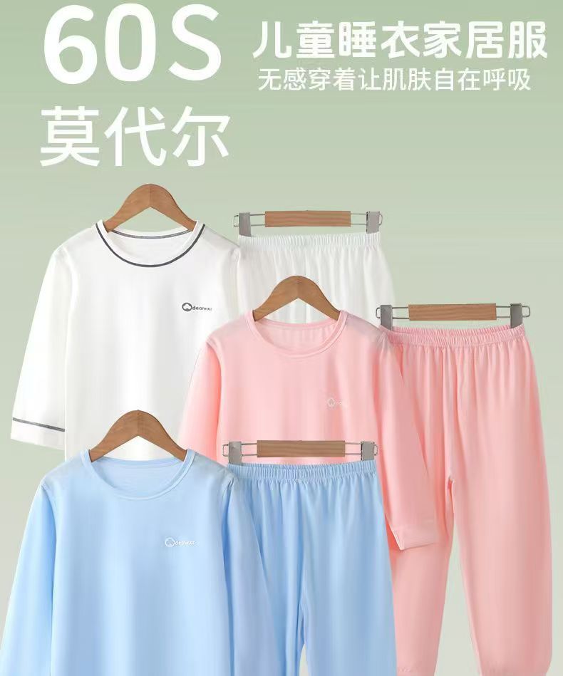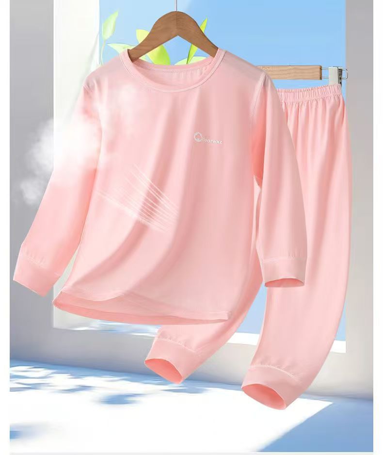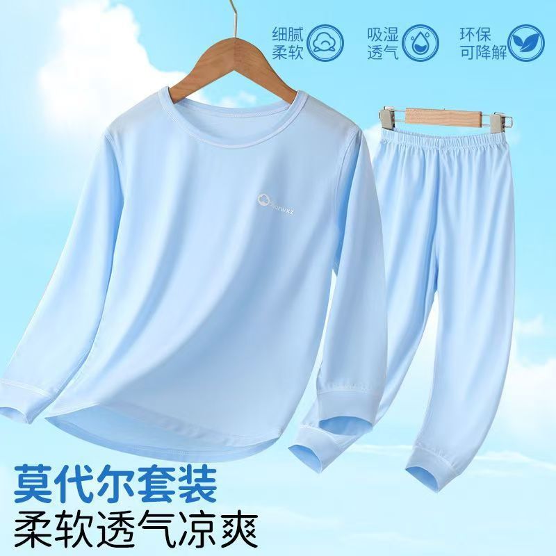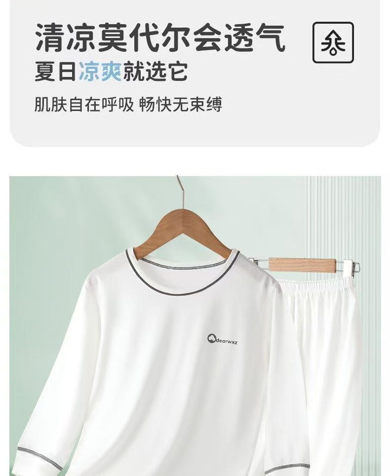 소년과 소녀를 위한 모달 잠옷, 소년과 큰 어린이를 위한 8부 소매 얼음 실크 여름 얇은 어린이 에어컨 가정복 세트