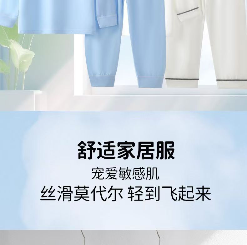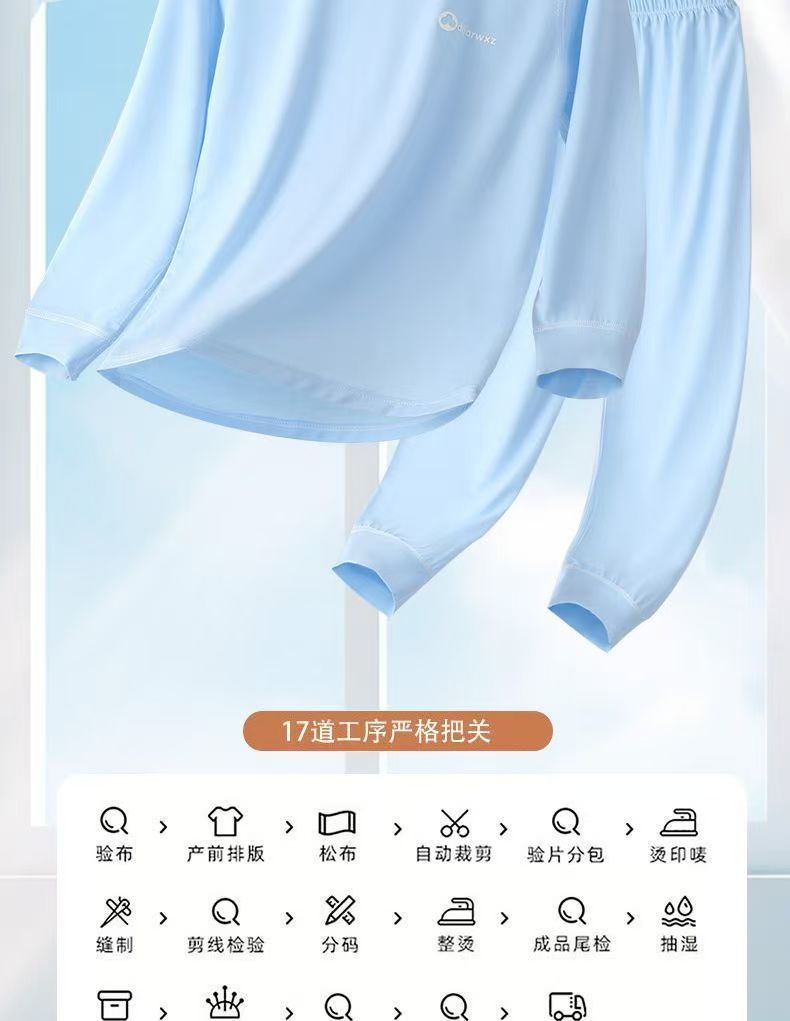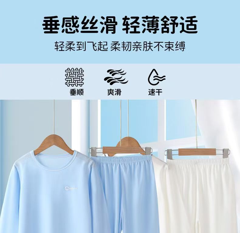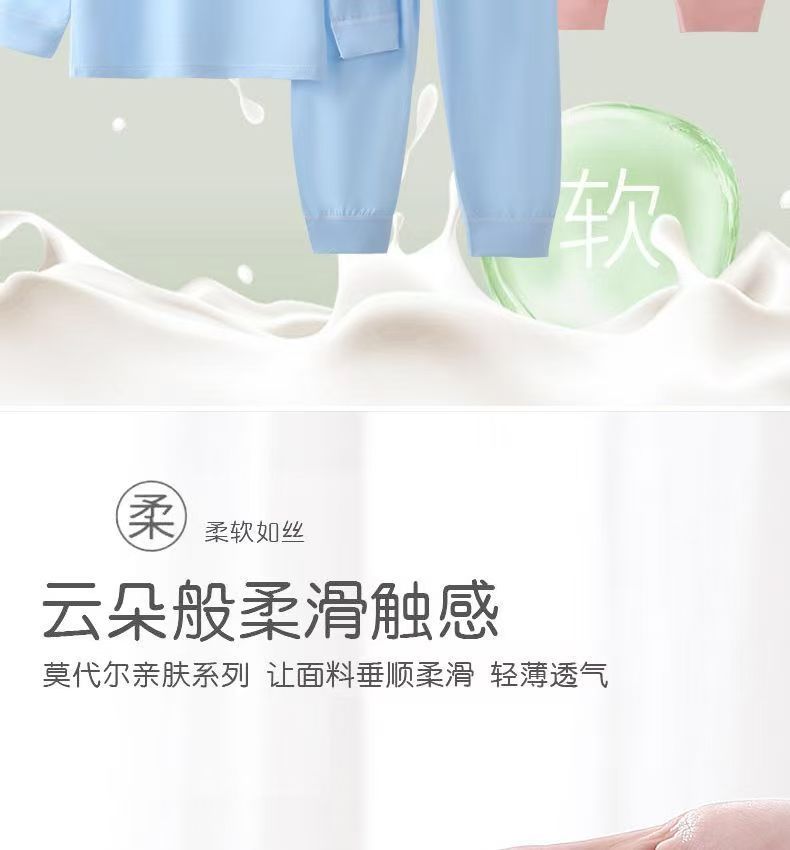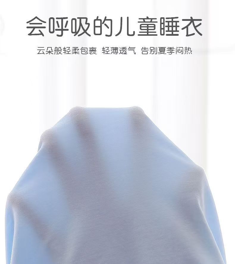 소년과 소녀를 위한 모달 잠옷, 소년과 큰 어린이를 위한 8부 소매 얼음 실크 여름 얇은 어린이 에어컨 가정복 세트스토어 가기