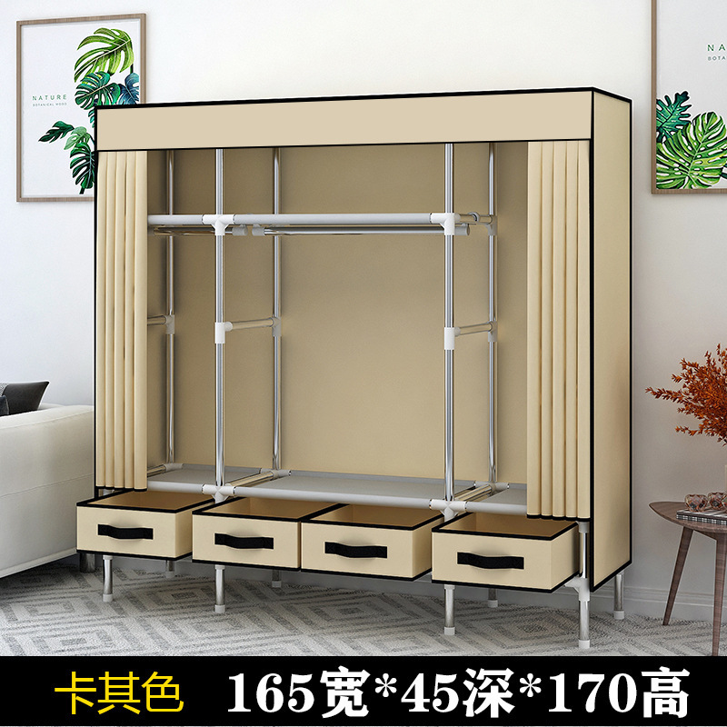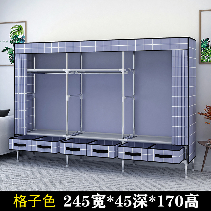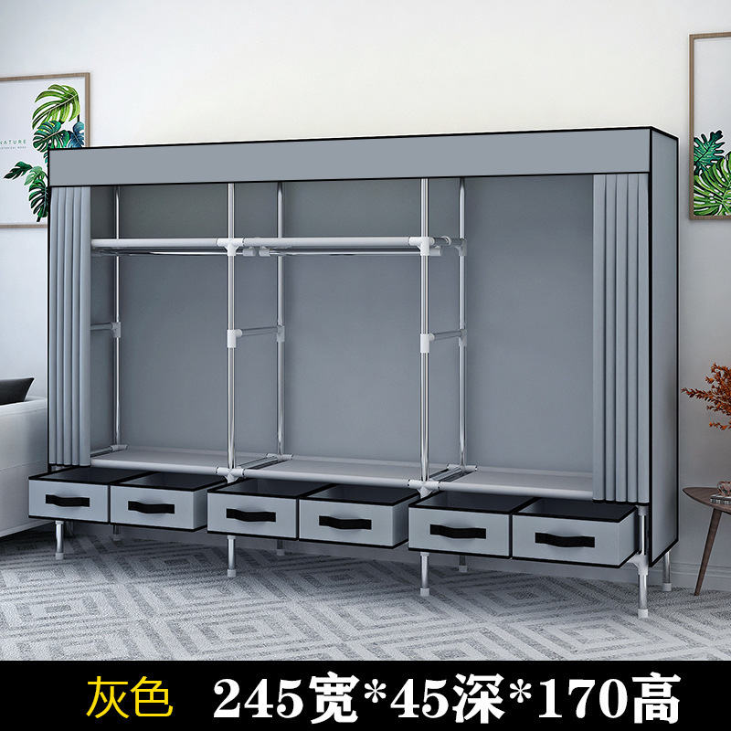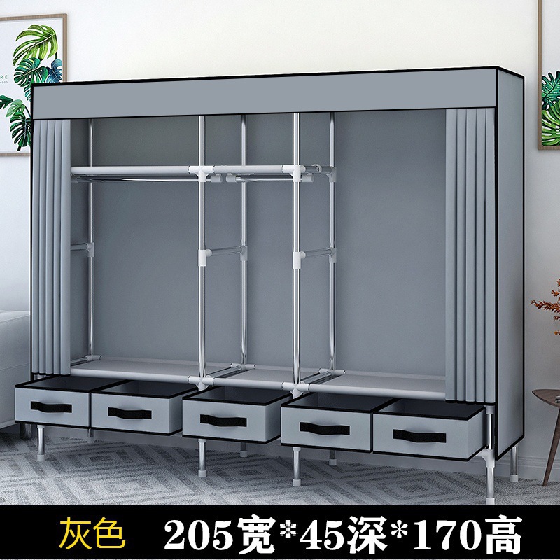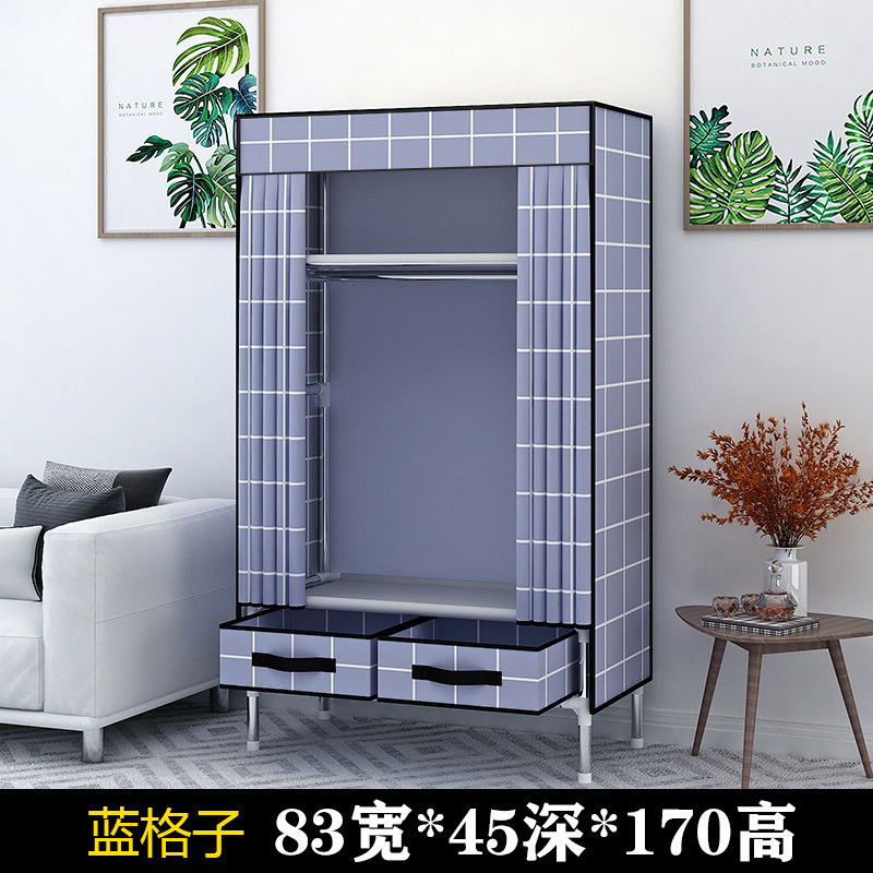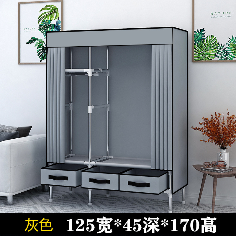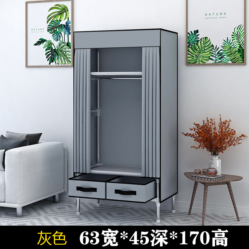 가정용 침실용 간단한 천 옷장, 임대용 전체 강철 프레임, 서랍이 있는 단일 소형 아파트, 두꺼운 조립스토어 가기